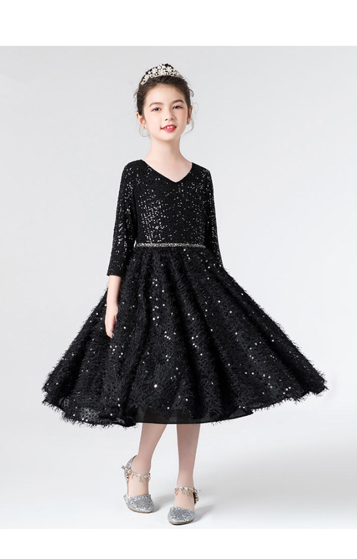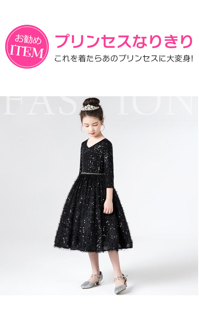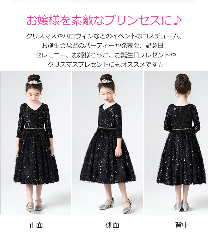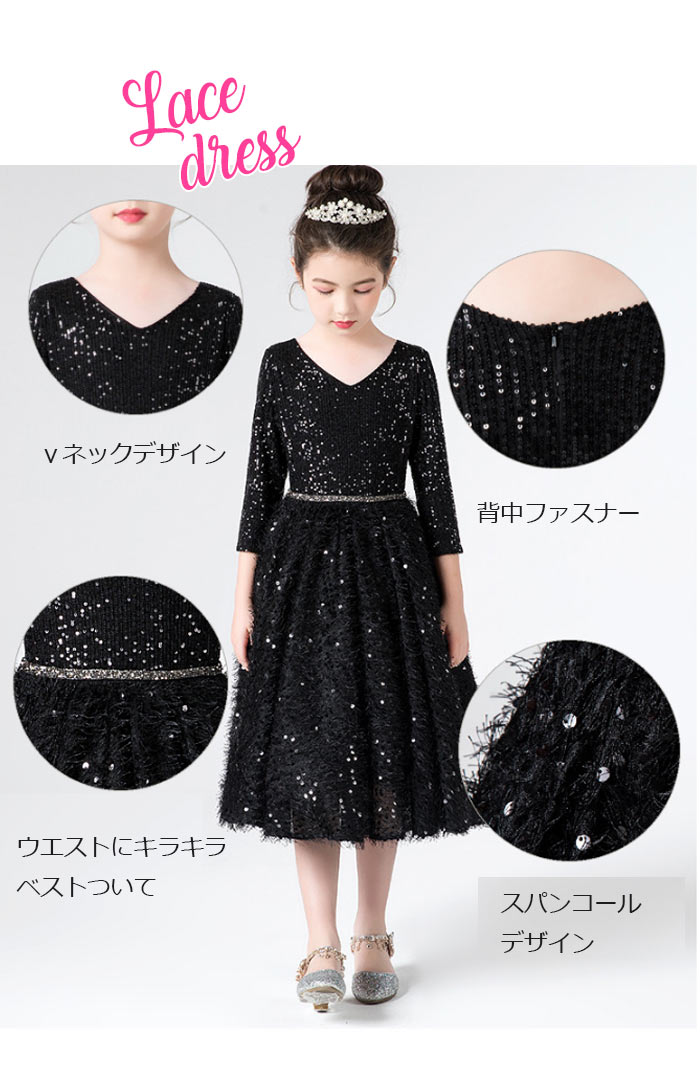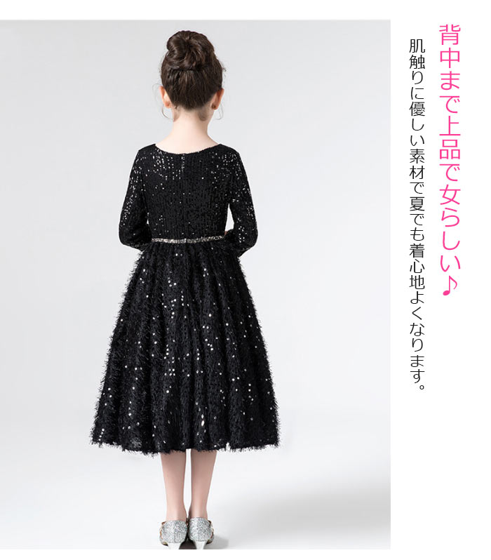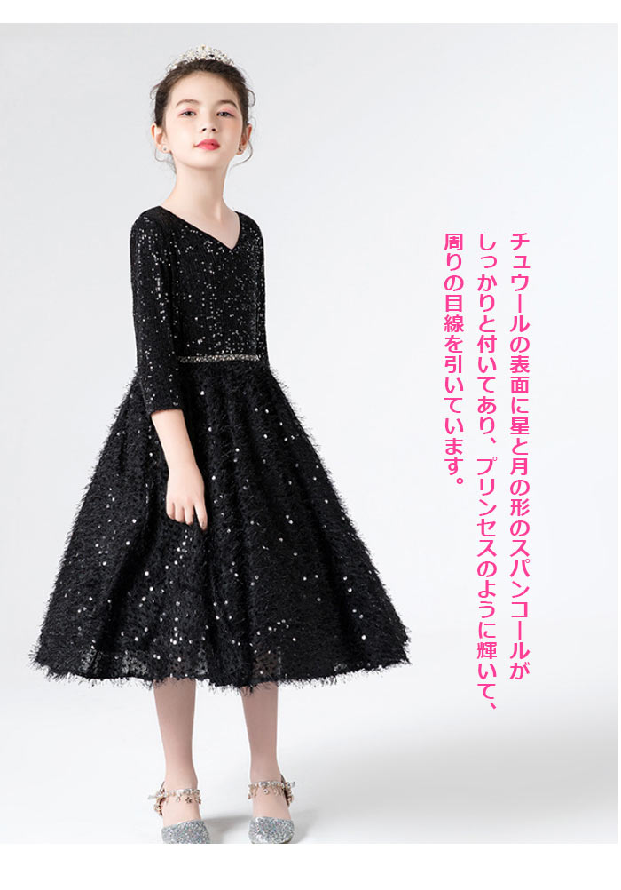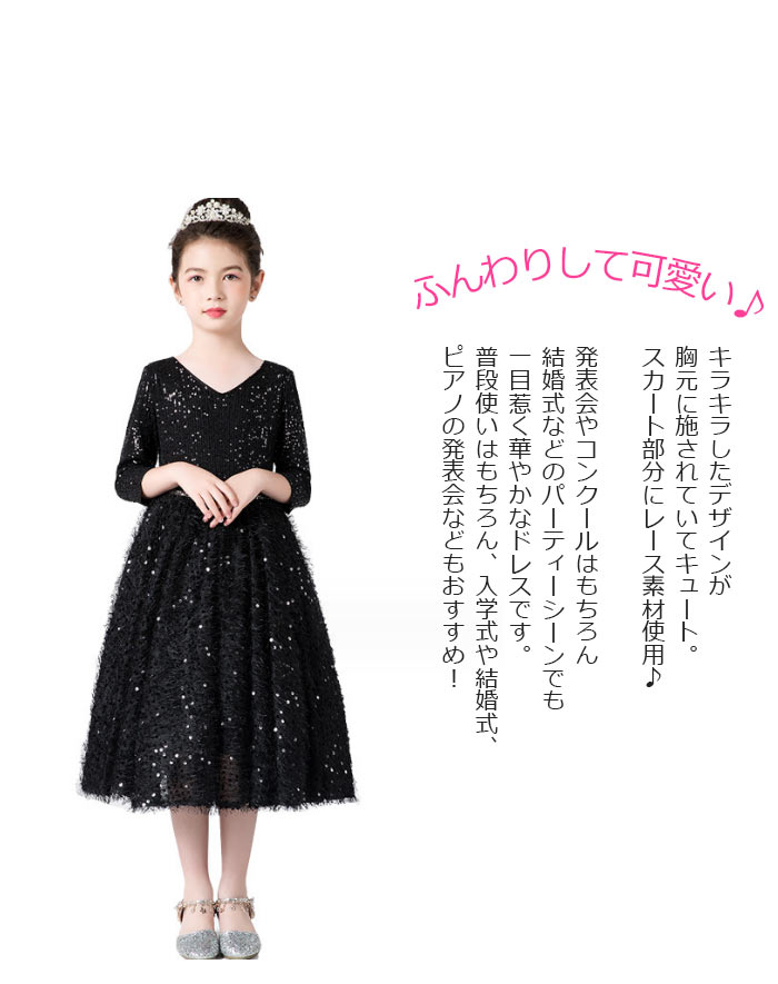 キラキラしてる七分袖丈と膝丈ピアノ発表