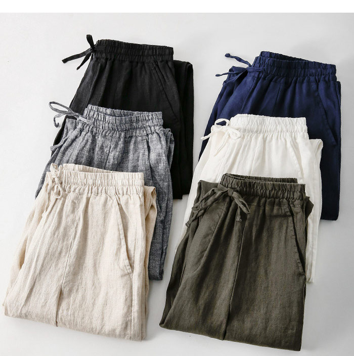 リネンパンツ麻 薄手 涼しい 無地冷感