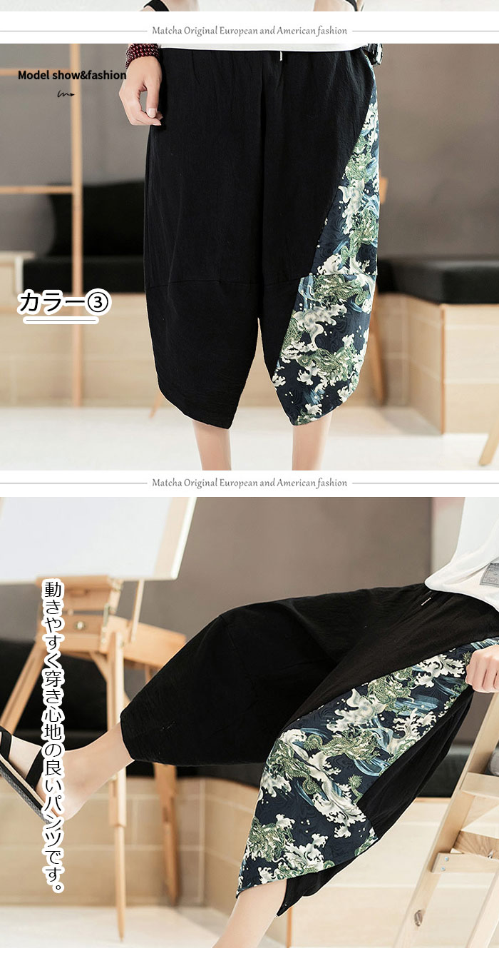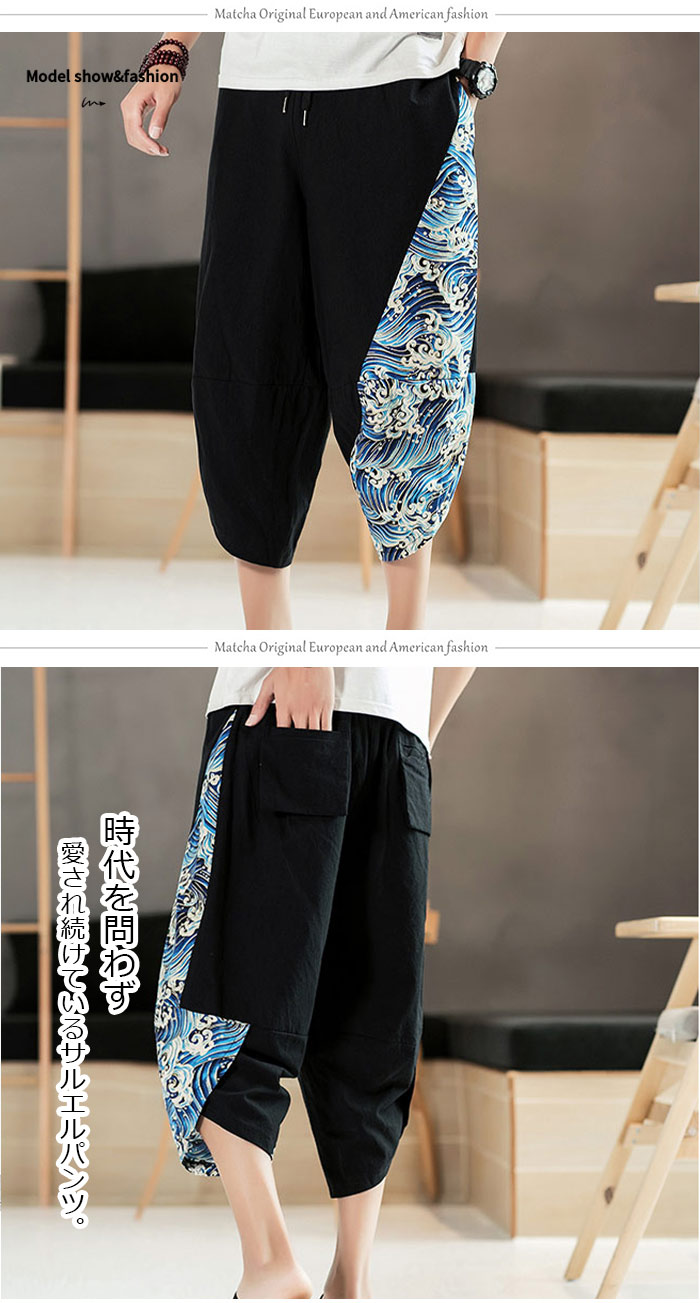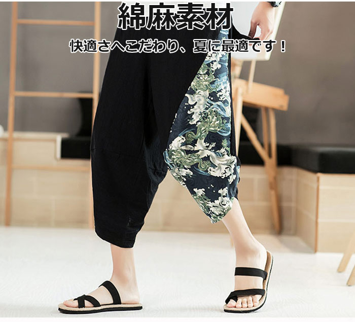 リネンパンツ 夏用サルエルパンツ 冷