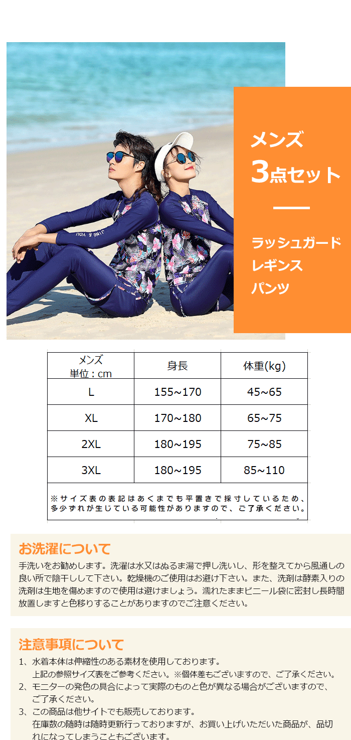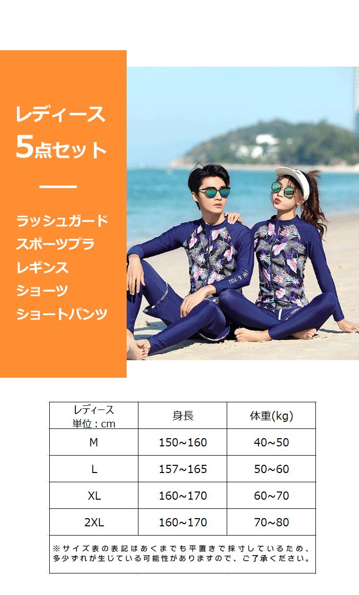 素材 ナイロンカラー展開 【女性5点セット】【男性3点セット】サイズ展開 【M】【L】【XL】【2XL】【3XL】【4XL】生産国 中国ガイド ※大量生産による生産過程におきまして、若干の個体差(1cmから2cm)が生じる場合がございます。
