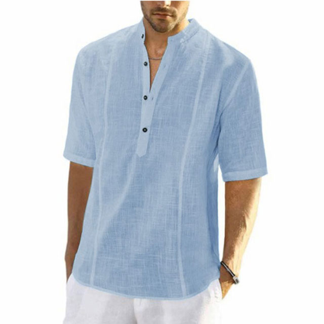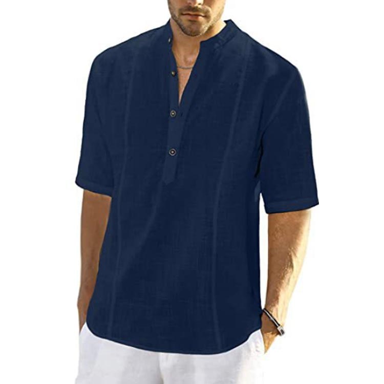 半袖シャツ メンズシャツ 立ち襟 リネ