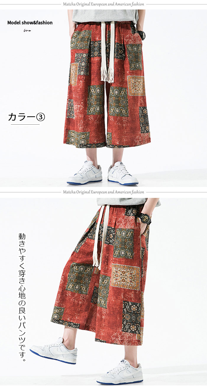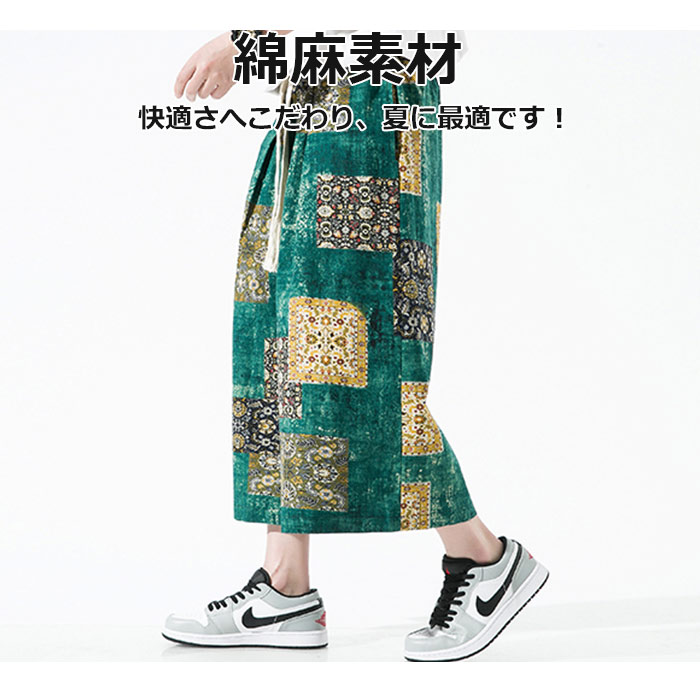 リネン 麻パンツ夏 冷感 ゆったり 七