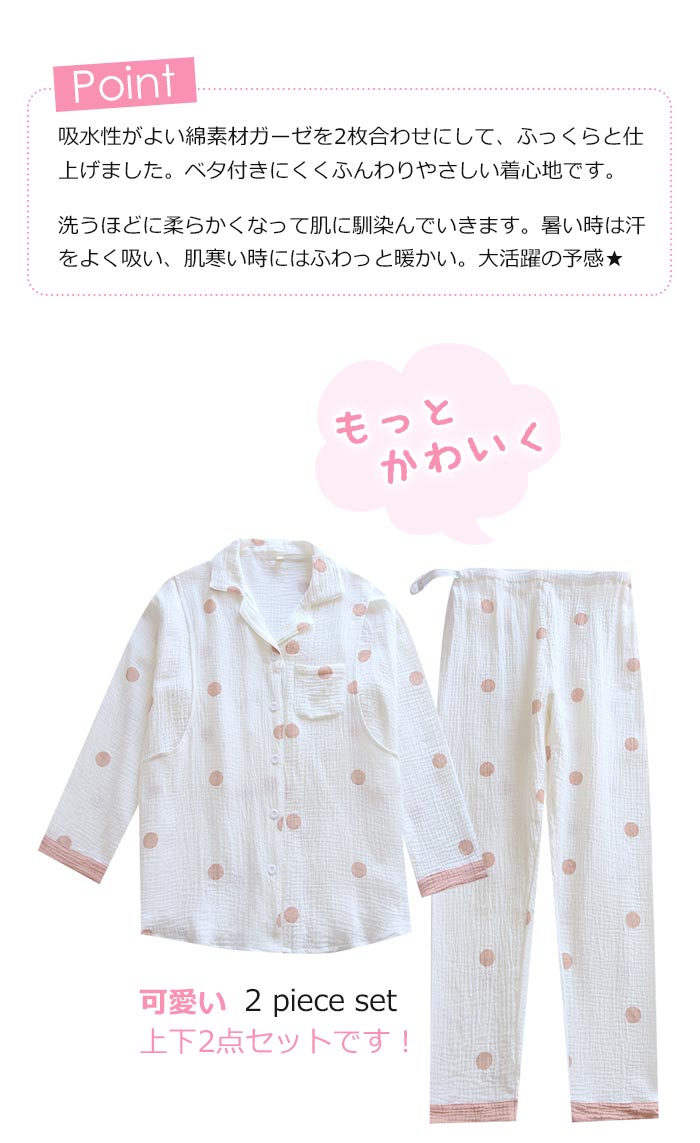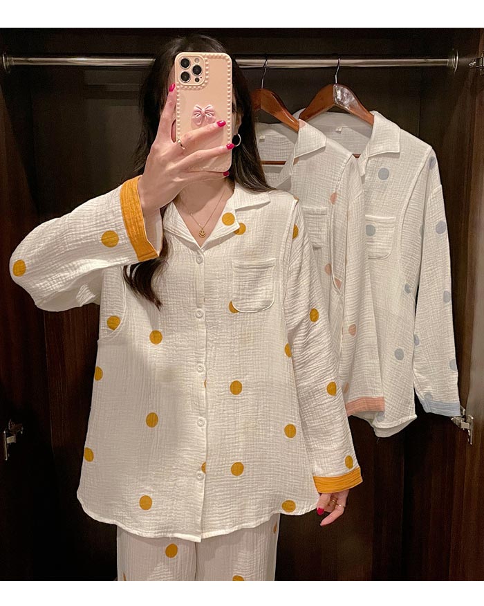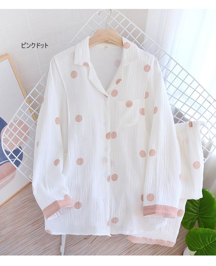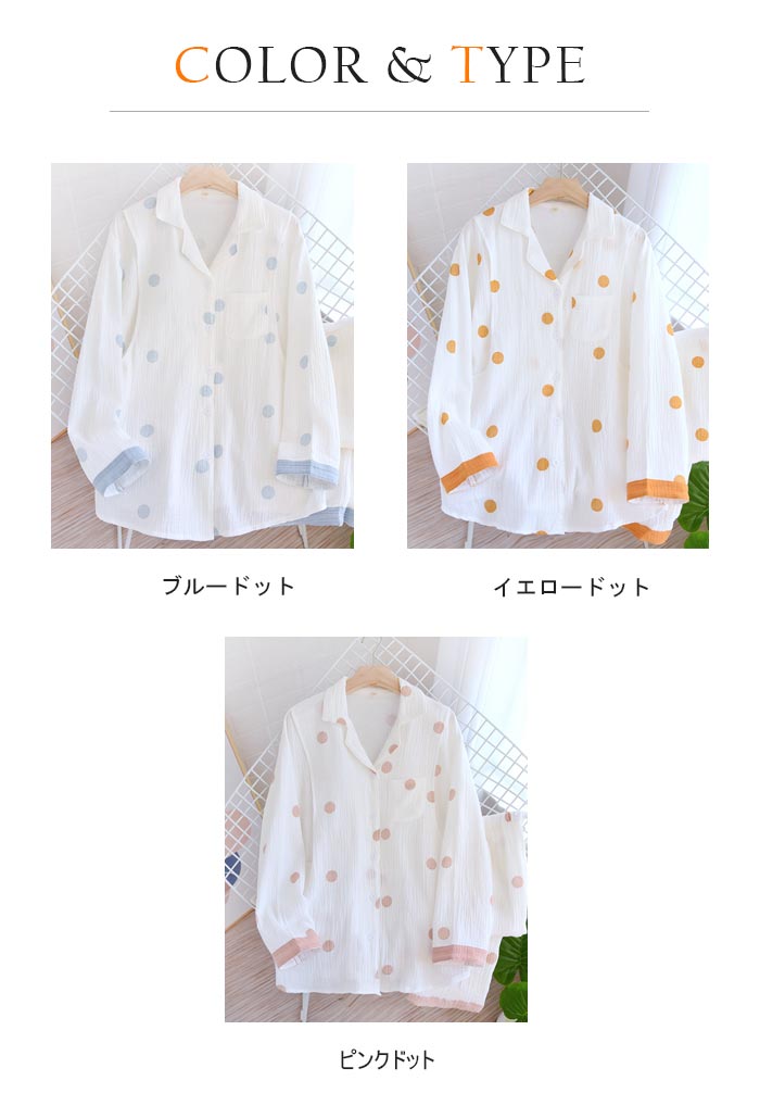 ドット柄二重ガーゼパジャママタニティ