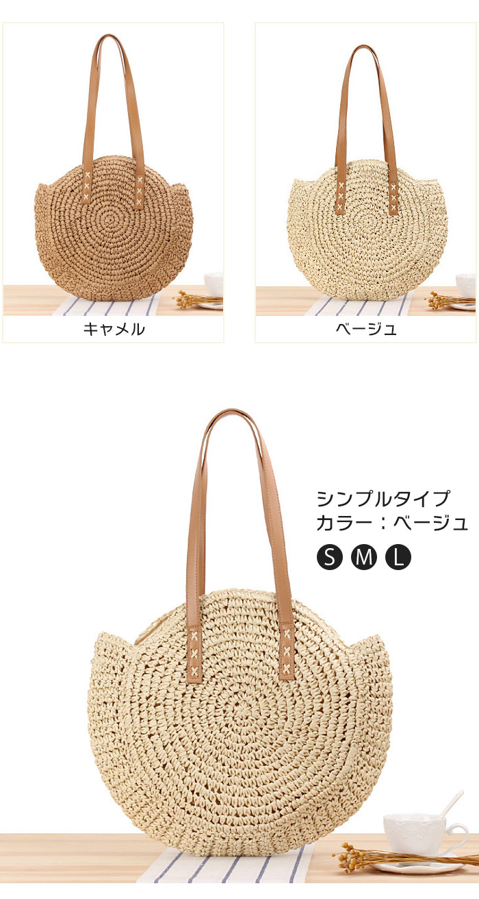 ビーチバッグ わらバッグ かごバッグショルダーバッグ レディース かごバッグ 斜め掛け かごバッグ かごトート サークルバッグ カゴバッグ 籠バッグ ミニショルダーバッグ 夏バッグ かご ナチュラル ベージュ キャメル M/L/XL