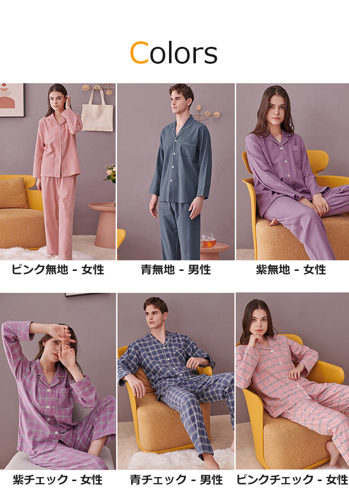 色: ピンク無地 女性 紫無地 女性 ネイビー無地 男性 ピンクチェック 女性 紫チェック 女性 ネイビーチェック 男性