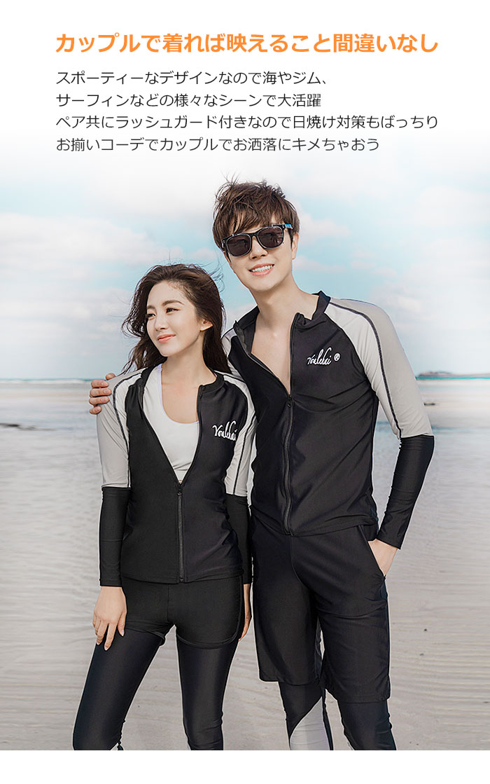 水着 ビキニー カップル ペアルック レディース 競泳用 ショーツパンツ フィットネス水着 セット メンズ カップル ペアルック ラッシュカード 上下セット セットアップ フィットネスウエア レギンス 韓国 長袖 M-3XL