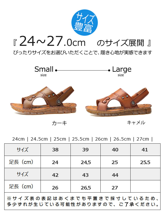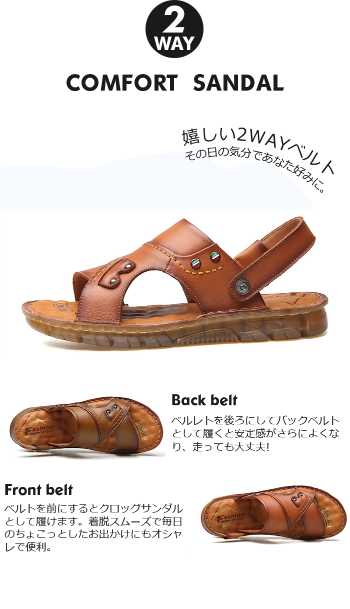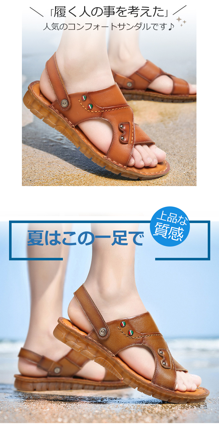 スポーツサンダル メンズ コンフォートサンダル ビーチサンダル 大きいサイズ 皮 カジュアルサンダル 2way 本革 スリッパ ビジネス靴 フォーマルシューズ 夏用 カーキ キャメル 24-27サイズ 父の日