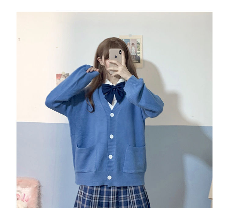 Vネック コットン カーディガン スク