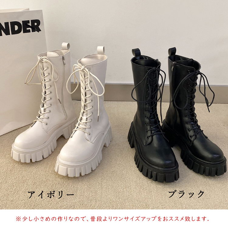 韓国風編み上げ靴厚底ブーツ韓国シューズ