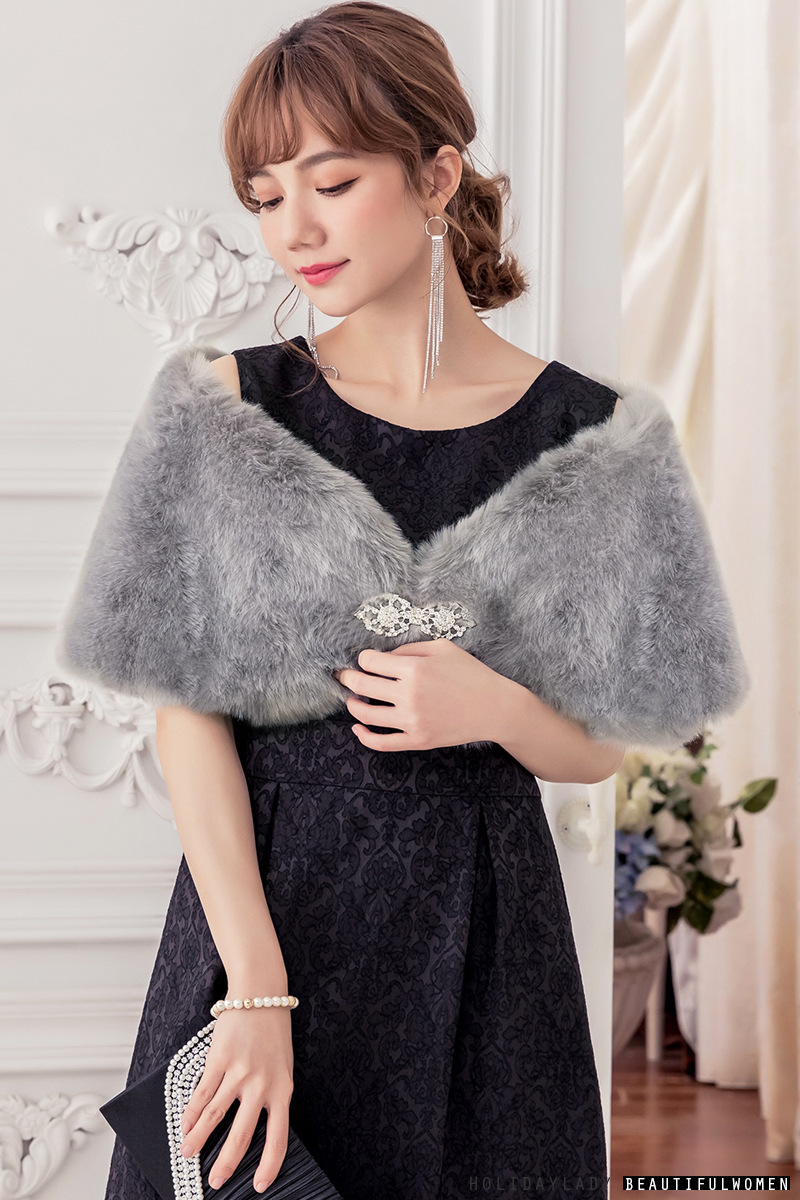 ファーボレロ 輝くブローチ付き ファーパーティードレス ボレロ カーディガン ショール ストールオシャレ ストール ボレロ カーディガン 肩掛け セクシー シースルー 着痩せ 羽織物 ショール ストール パーティードレス 結婚式 披露宴 発表会