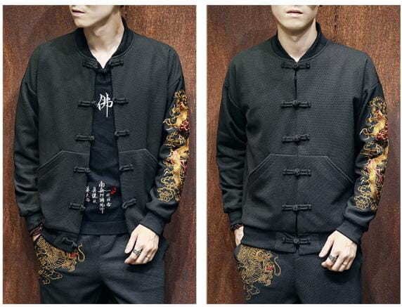 スカジャン メンズ 中国風ボタン 刺繍