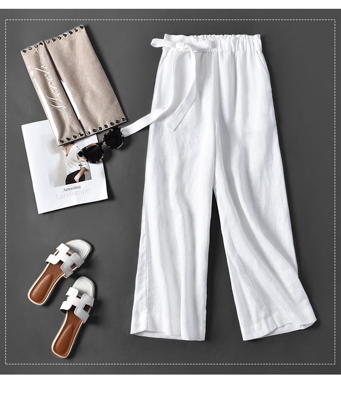綿麻パンツ リネン混 9分丈 コットン
