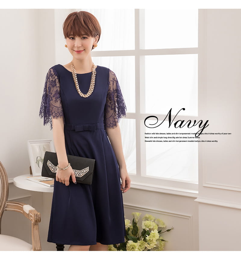 繊細なレースの袖が女性らしい揺れ感を生み出すフェミニンなAラインドレス