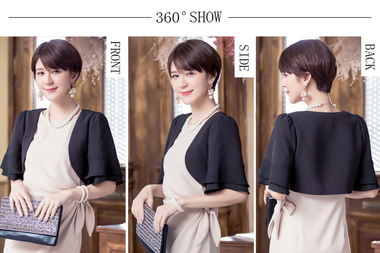 結婚式 ボレロ パーティードレス ジャケット 大きいサイズ 体型カバー お呼ばれ 二次会 上品 フレアスリーブ レディース 20代 30代 40代 ワンピース ノーカラー 試着 大人 フォーマル 成人式 同窓会 春 夏 春夏