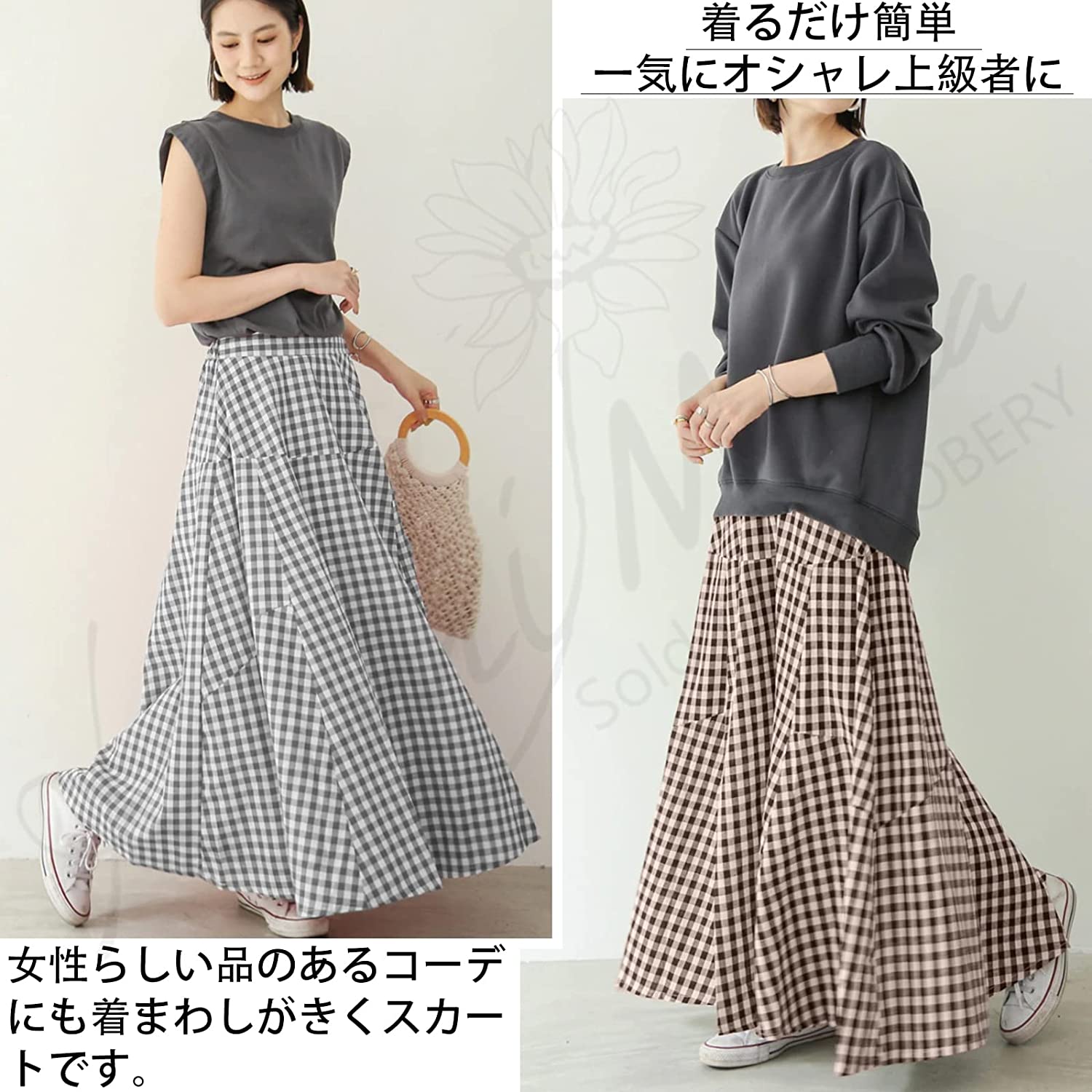 【フレアスカート特有のふわっと広がるシルエットで優しい印象に】歩くたびにふんわり広がって大人可愛い。分量たっぷりなボリューミーギンガムチェックのロングスカートの登場! トレンド感満載のふんわりマキシ丈スカートは、どんなアイテムとも相性が良く、簡単に大人可愛いスタイルが手に入ります。 コーディネートの幅がぐっと広がる、1枚は持っていたいマストアイテムです。