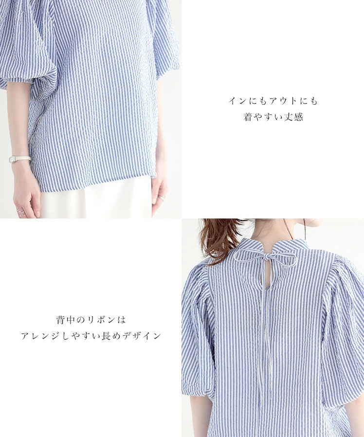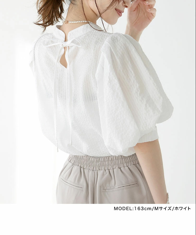 シアースリーブ ドッキングシャツ ボウタイシャツブラウス