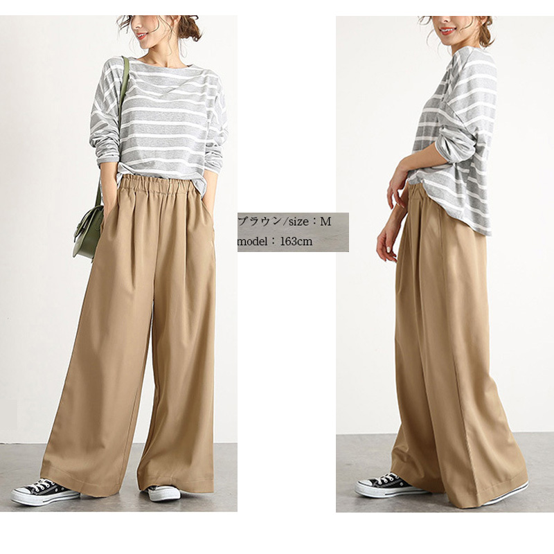 ワイドパンツ レディース 無地 きれい
