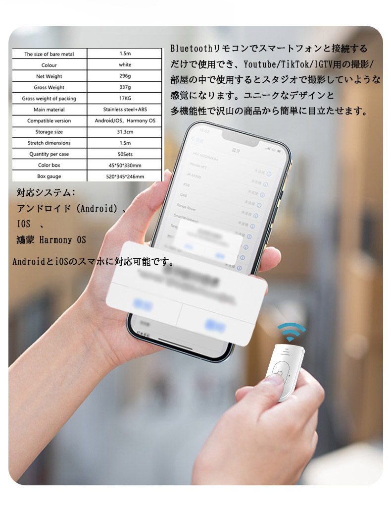 マホ三脚 自撮り棒 セルカ棒 じどりぼう 遠隔リモコン 三脚 150cm以上 コンパクト 軽量 安定 ロング Bluetoothリモコン シャッターボタン付きで最大10m操作範囲