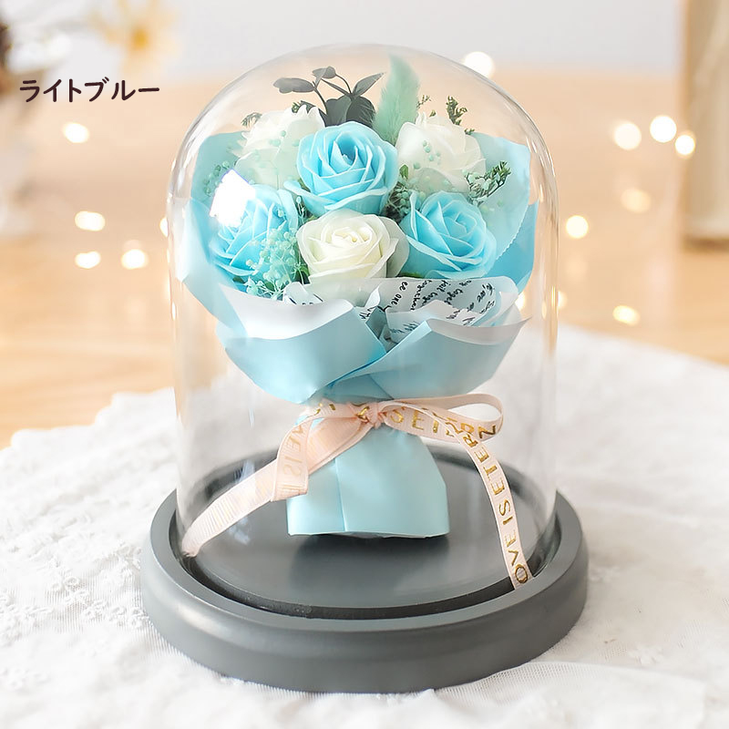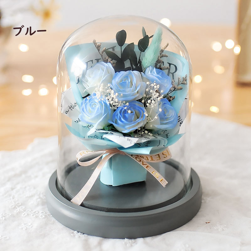 【お手いて方法】:決してお水をあげないでください。 湿度が高い場所には置かないでください。 直射日光のあたる場所には置かないでください。(花びらの色褪せや液ダレ、鮮度などに影響がありますのでお避けください。) 風通しの良いところに保存してください。生産国 made in china