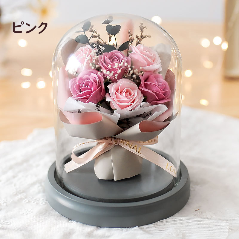 【花材】:最高級のプリザーブドフラワーを使用しています(品質保証) ポット:ガラス 台座:天然木