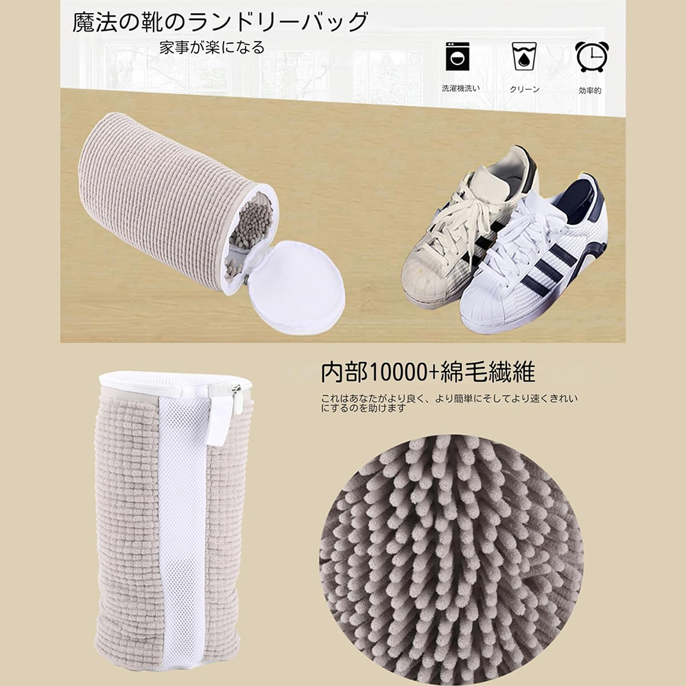 【高品質の素材】: 靴 洗濯機 は、高品質な繊維素材を使用し、細部と品質にこだわって作られています。内部は、3000本以上の毛羽繊維を使用し繊維は細かく柔らかく、靴の表面を優しく清潔に保ち、すべての靴が独特の輝きを放つようにします。