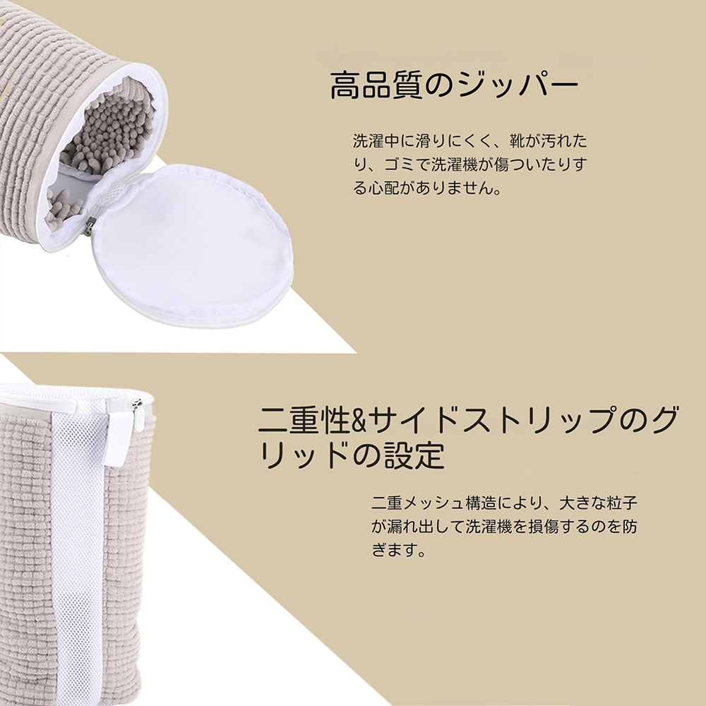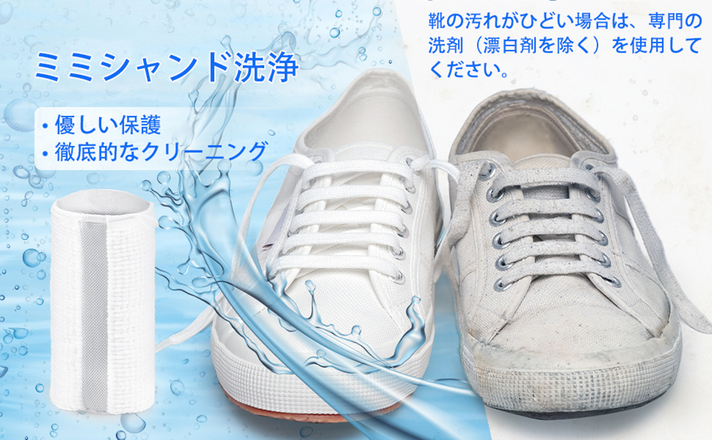 お掃除の際は片足をネットの中に入れてください。 網目の隙間が多いと網目との摩擦が生じ、洗浄力が高まります。 子供用の靴の場合は、ネットの両側に 1 足ずつ置くのが最適です。