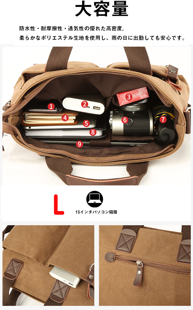 2wayキャンパス調 持ち手付き 衝撃