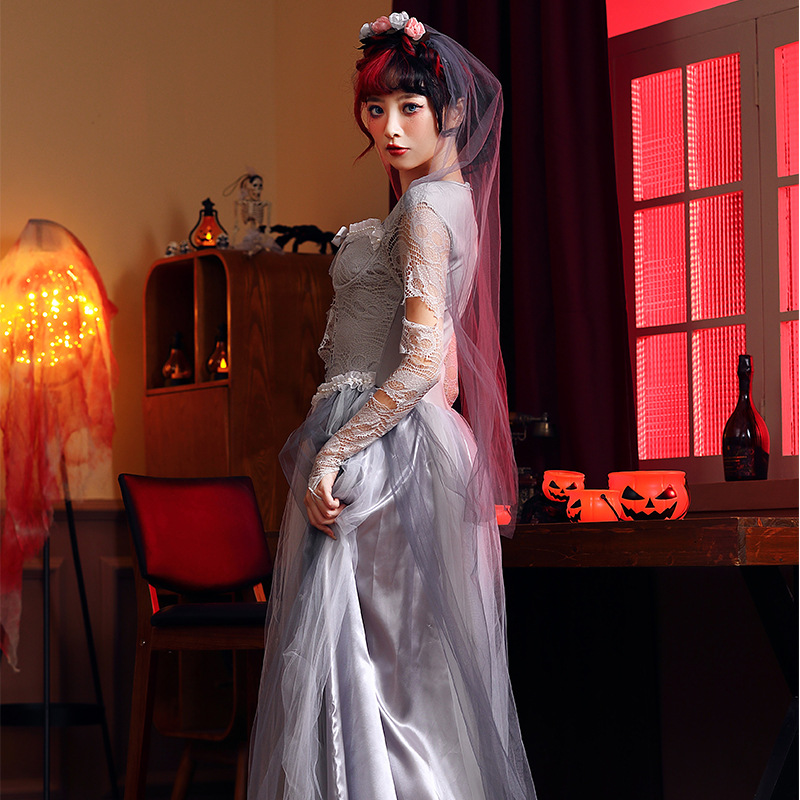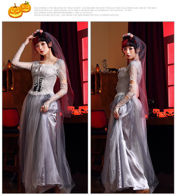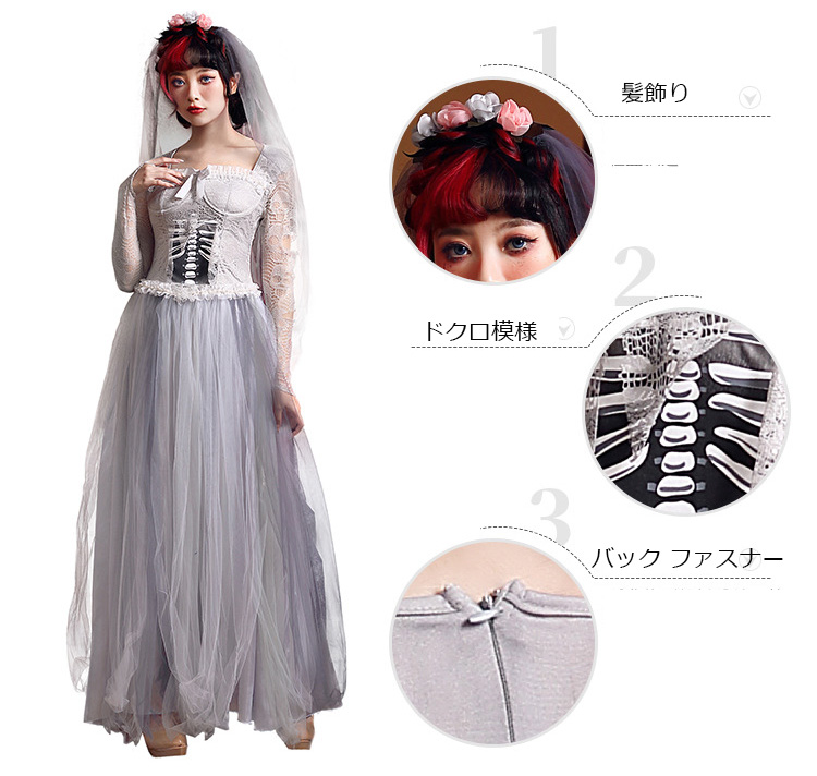 ハロウィン コスプレ 仮装 パンプキン ハロウィン ゾンビ 花嫁 レース ドレス ハロウィン 出し物 妖怪 萌え袖 キョンシーガール 妖怪 萌え袖