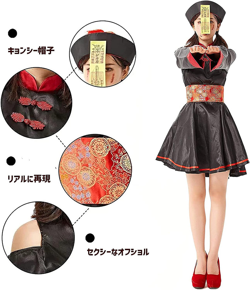 ハロウィン コスプレ 仮装 パンプキン ハロウィン ゾンビ 花嫁 レース ドレス ハロウィン 出し物 妖怪 萌え袖 キョンシーガール