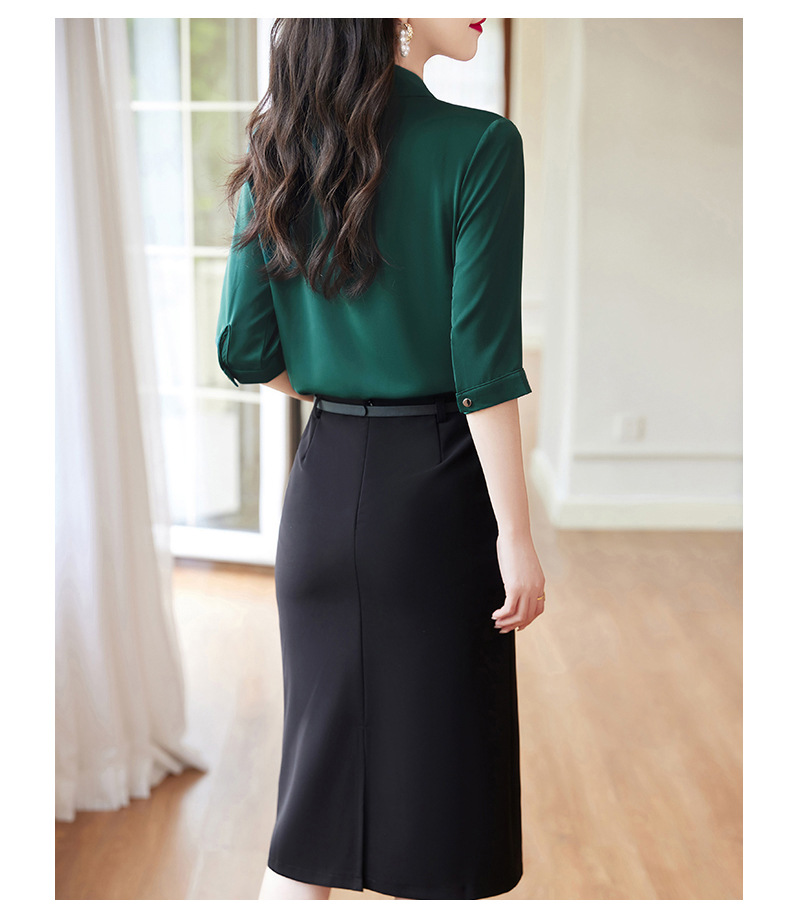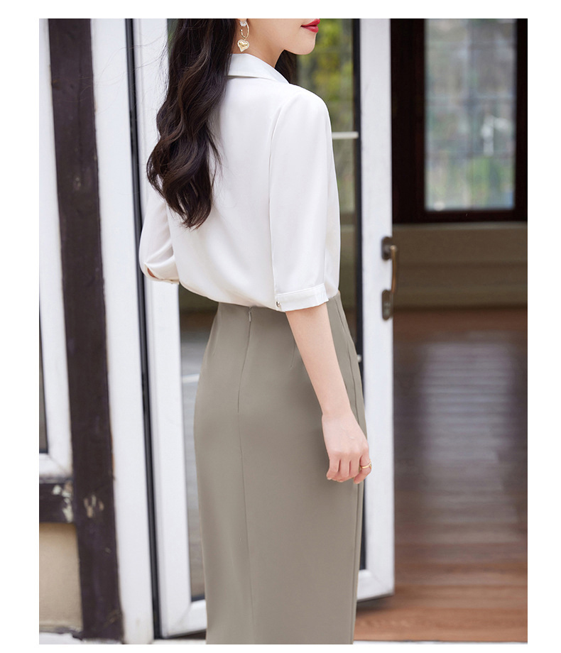スカート:Q50スカート/Q58スカート商品内容 シンプルで上品なvネックブラウスになります。薄めのサラッとした生地感で軽やかな着心地が女性らしい印象に仕上がります。袖口はノースリーブでもなく半袖でもない上品な見えするフレンチスリーブで、一枚でもアウターを重ねてもまとまりのあるスタイルに。サイドの裾は軽くギャザーがより、裾をインしてもアウトで着てもお洒落に着こなすことができます。