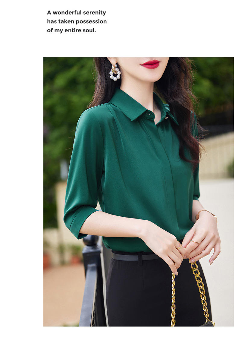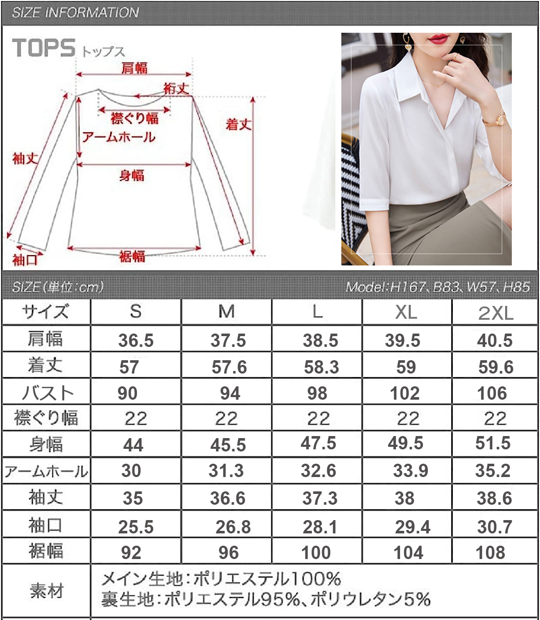 薄手のさらっとした生地感ブラウスで、キャミソールやベアトップなどのインナーやジャケット、カーディガンなどの羽織りと合わせることで、春、夏、秋と長い季節にお使い頂けます。どんなお洋服にも合わせやすいシンプルなデザインなので、20代、30代、40代、50代、60代と幅広い年代の方に長く使って頂けるアイテムとなります。適度なとろみ感で柔らかな印象を与えてくれます。オフィススタイルはもちろん、入学式や卒業式、授業参観などの行事や、食事会やカジュアルなパーティー、デートやお出かけなど様々なシーンで活躍のアイテムとなります。