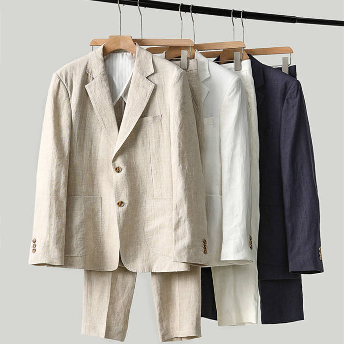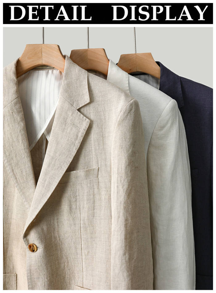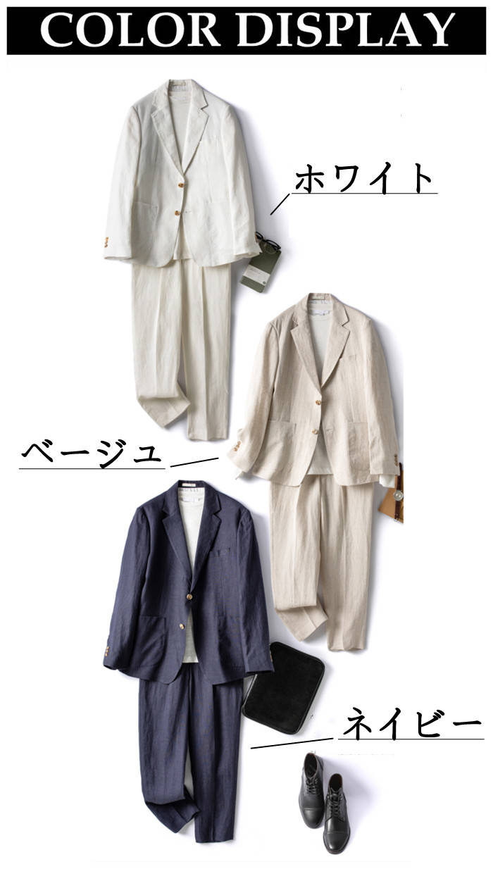 接触冷感 亜麻100% スーツ 上下セット テーラードジャケット スラックス 春夏品 男性用 無地 通気性 3colors 白色