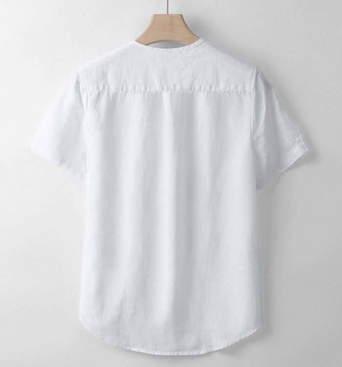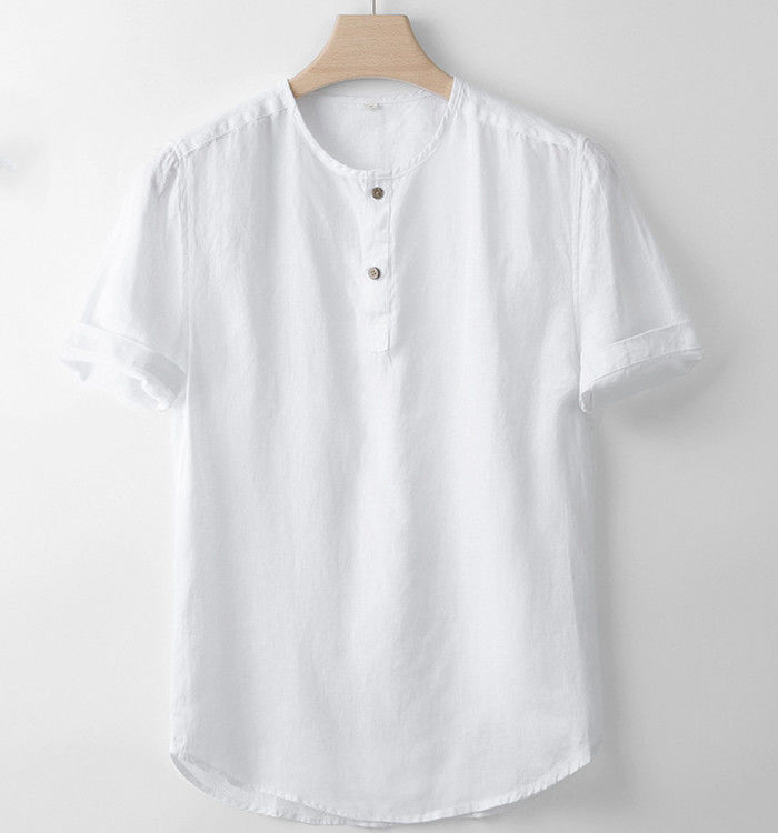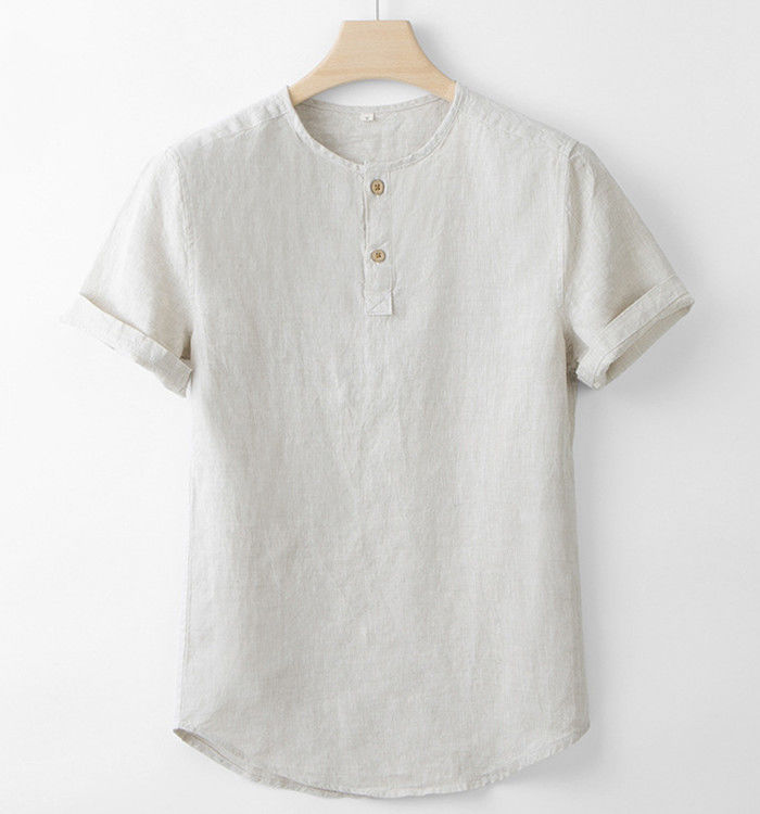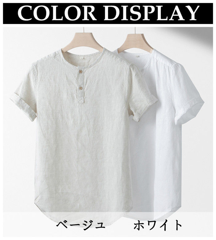 麻 接触冷感 ヘンリーネック 半袖Tシ