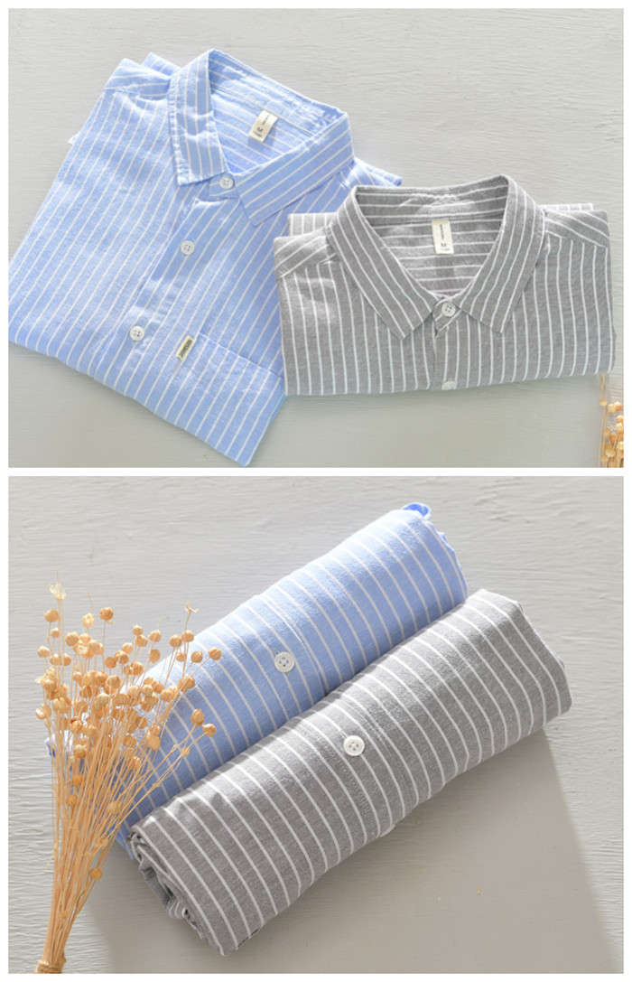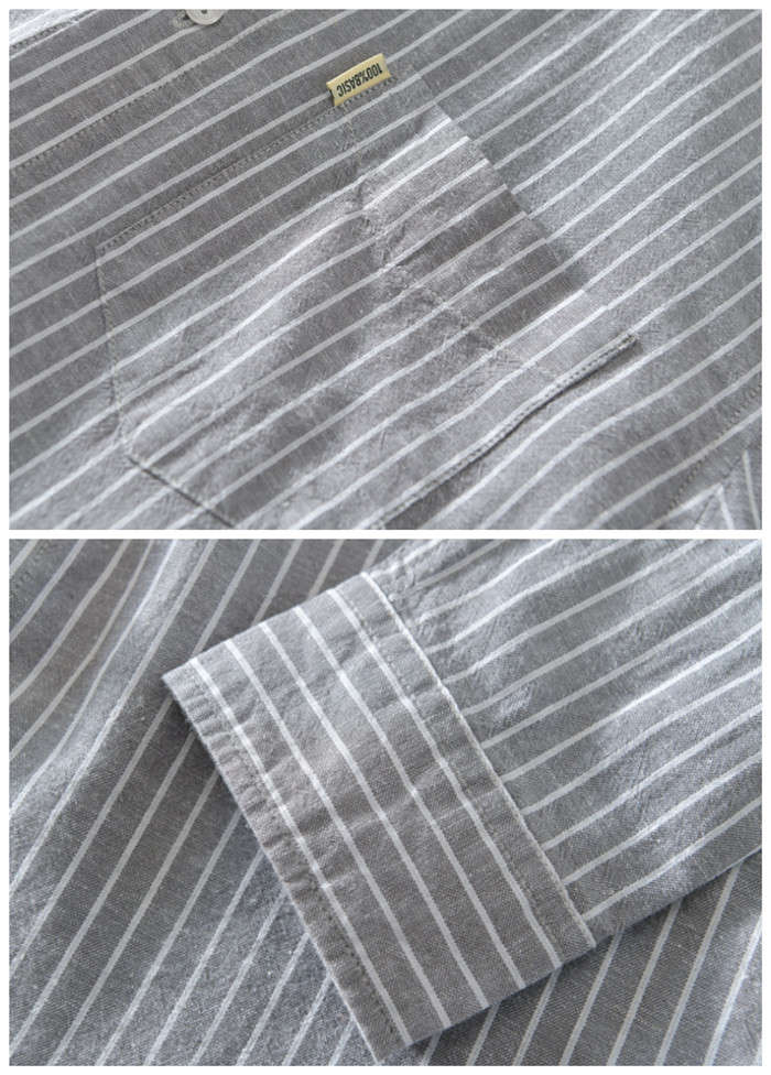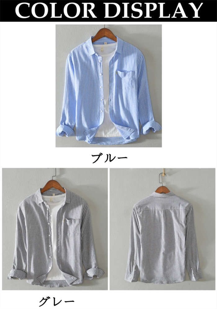 綿麻 ストライプ柄 長袖シャツ カジュ