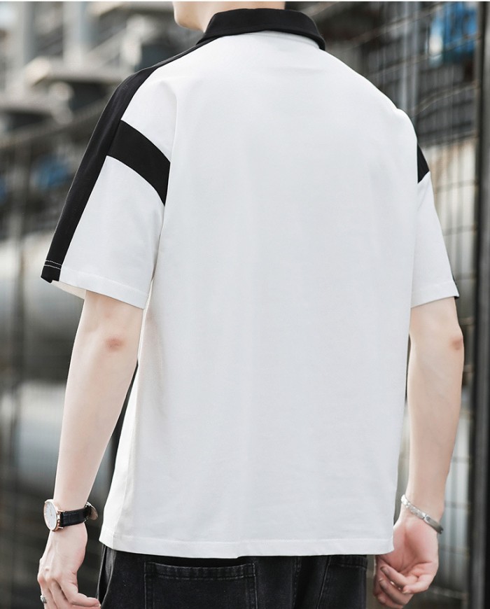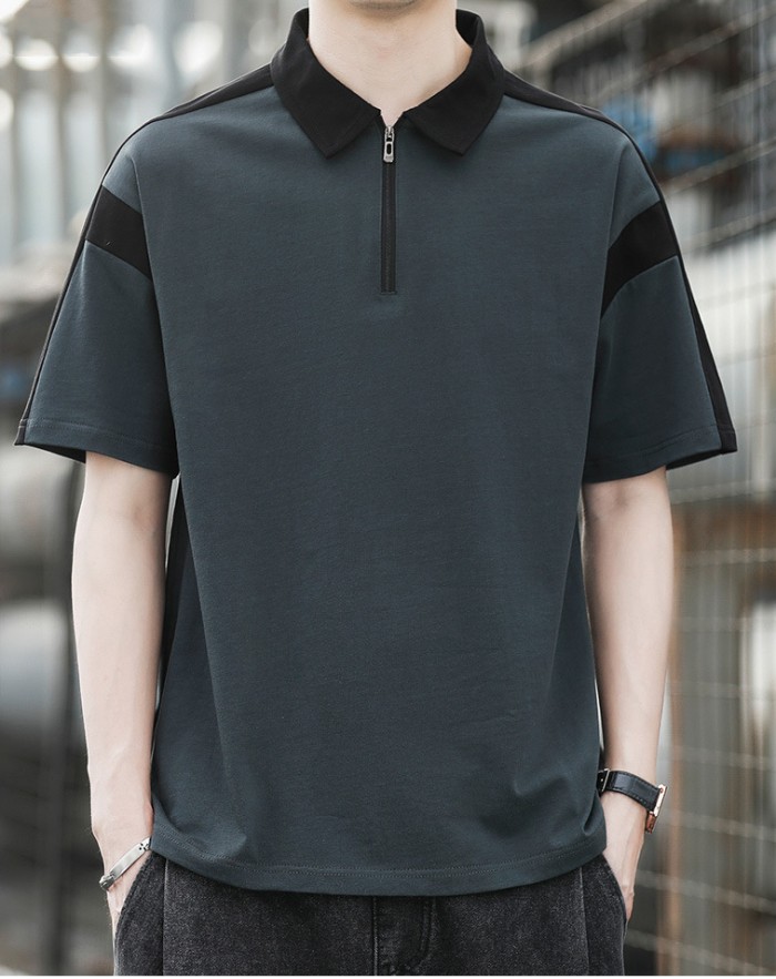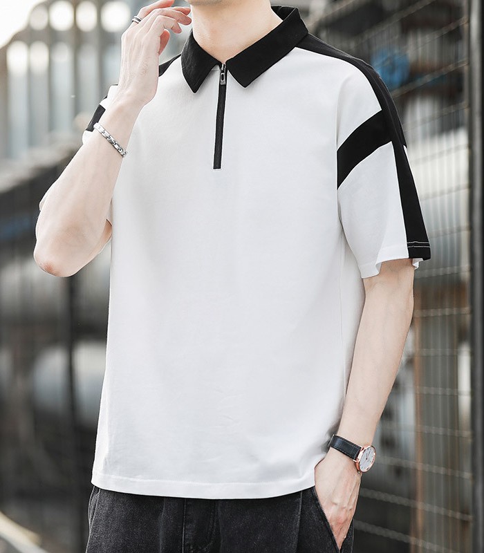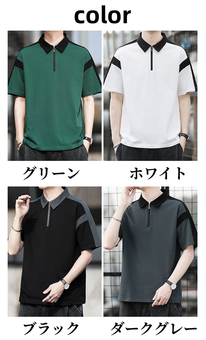 半袖ポロシャツ ハーフファスナー ジャージポロシャツ 夏物 通気 涼しい トップス 黒色 白色 4色