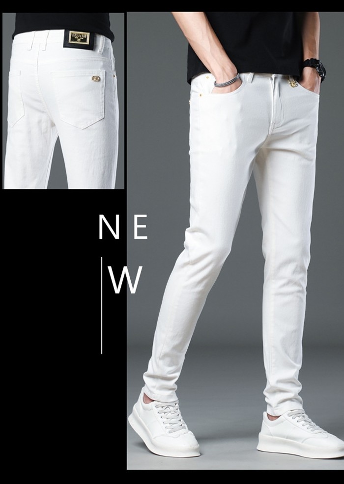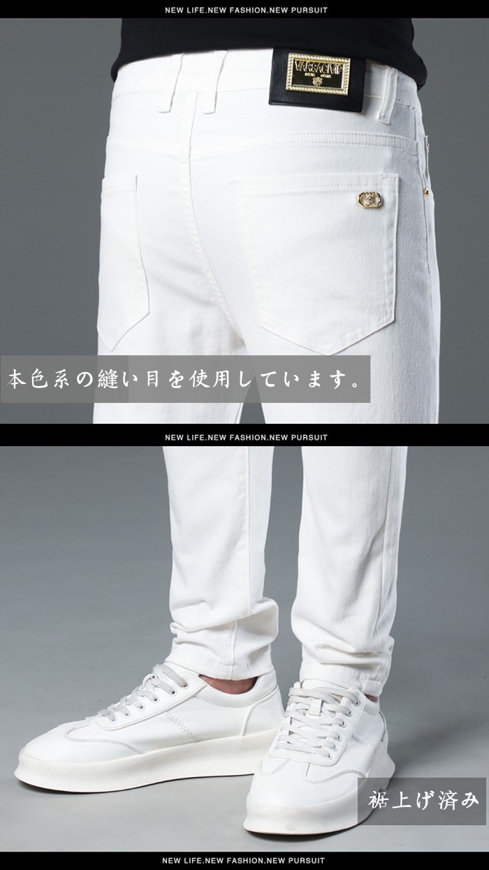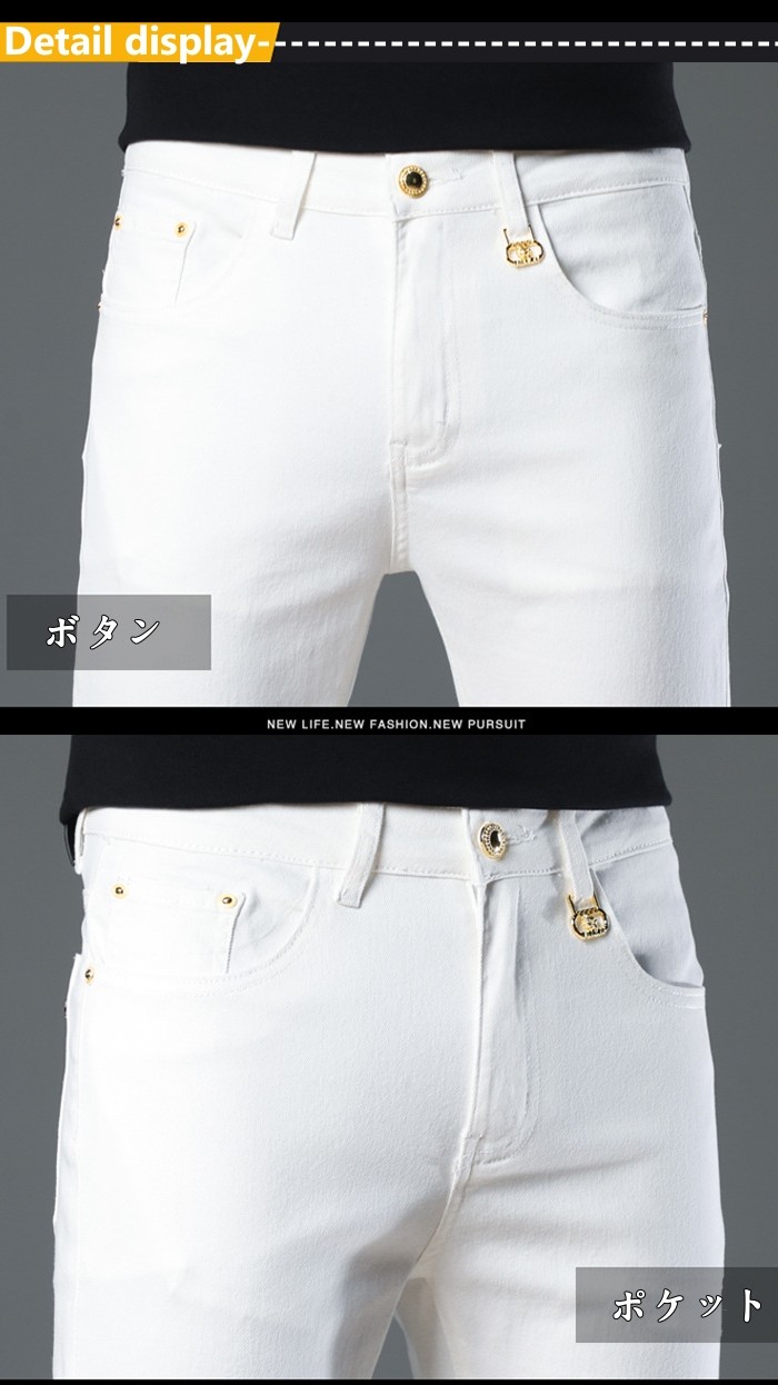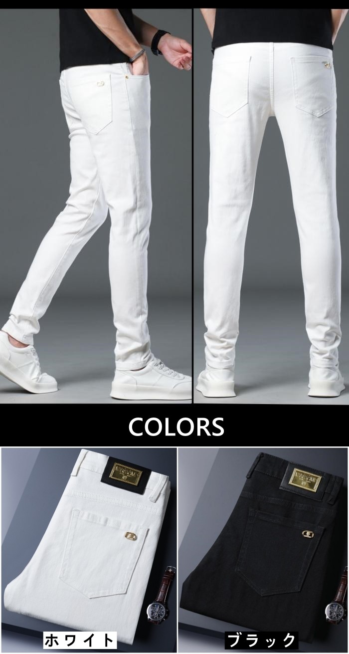 春 夏 秋 新作 美脚 ジーンズ 伸縮性 デニムパンツ 男性用 ロングパンツ 裾上げ済み 普段着 2colors 黒色 白色