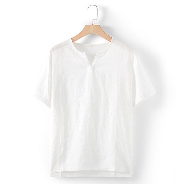 綿麻 半袖Tシャツ Vネック カジュア
