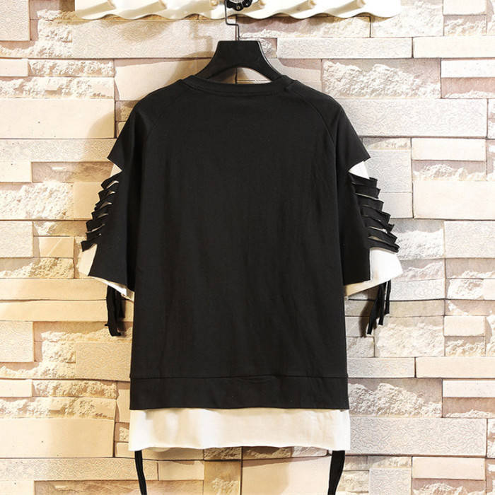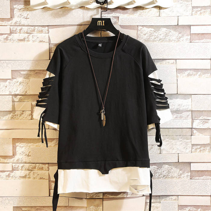 Tシャツ 半袖 Tシャツ メンズ ヒップホップ風 コットン T-shirt 丸首 カジュアルTシャツ ダメージ加工 Uネック トップス 夏物 カットソー