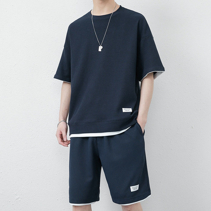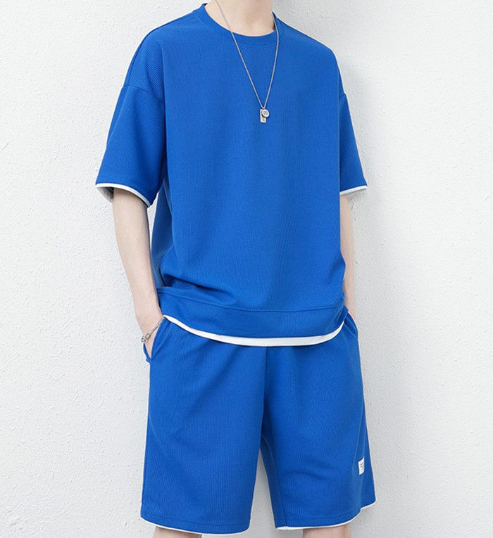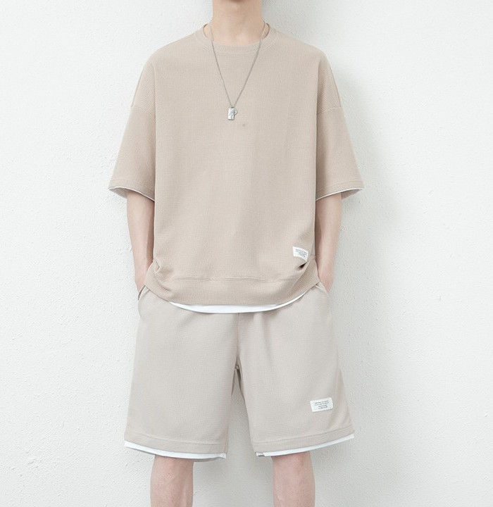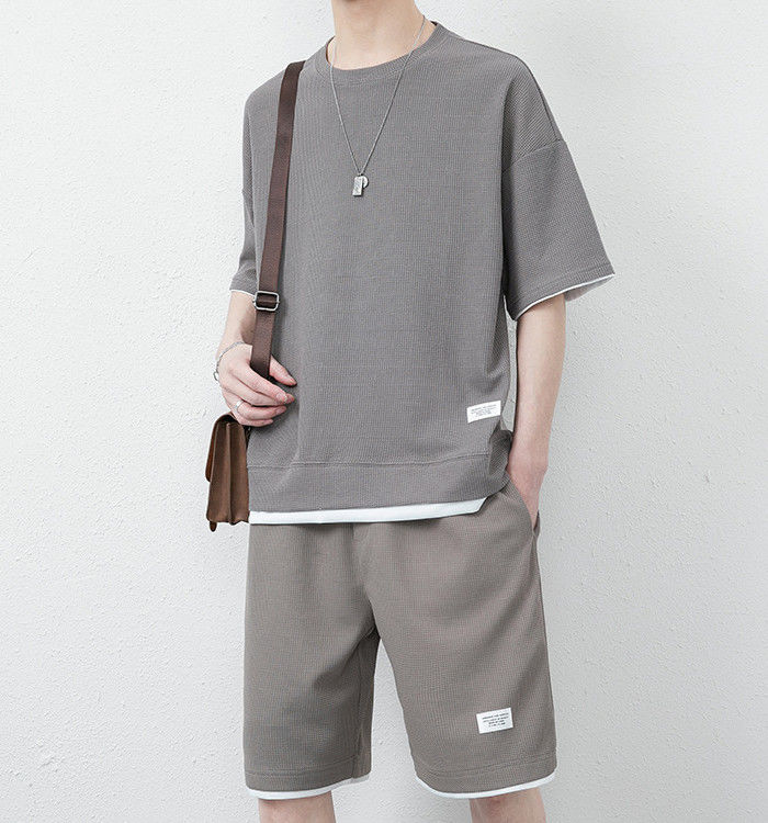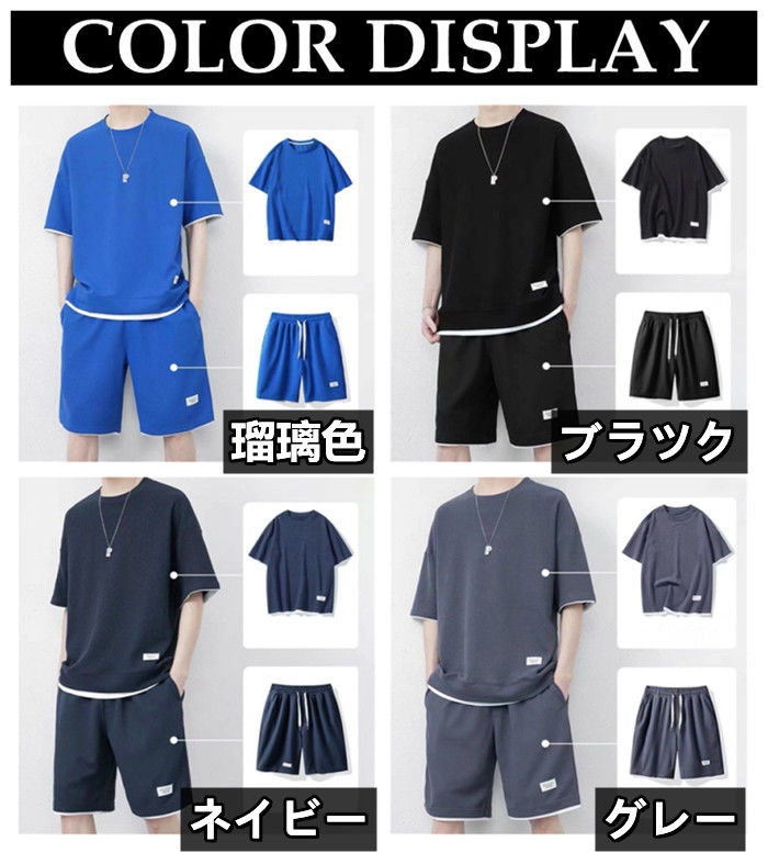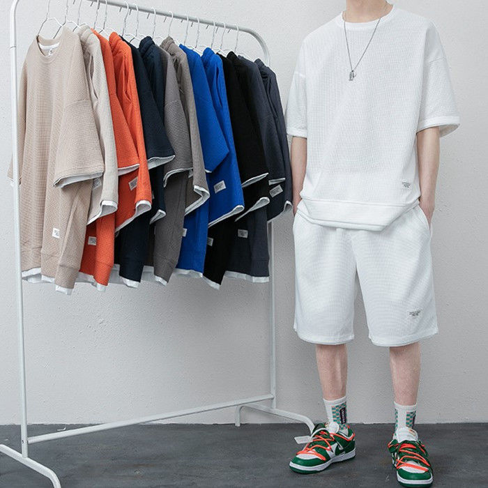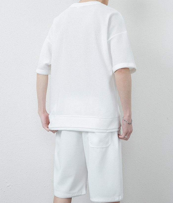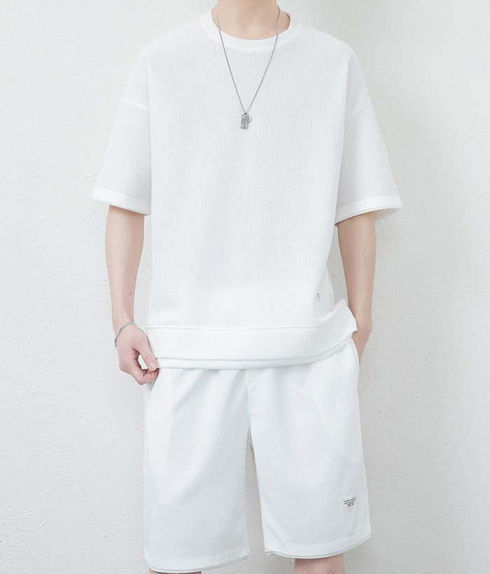 サマーセット 2点上下セット ワッフルTシャツ ランニングウェア ハーフパンツ 男性 夏物 8色 灰 白 黒