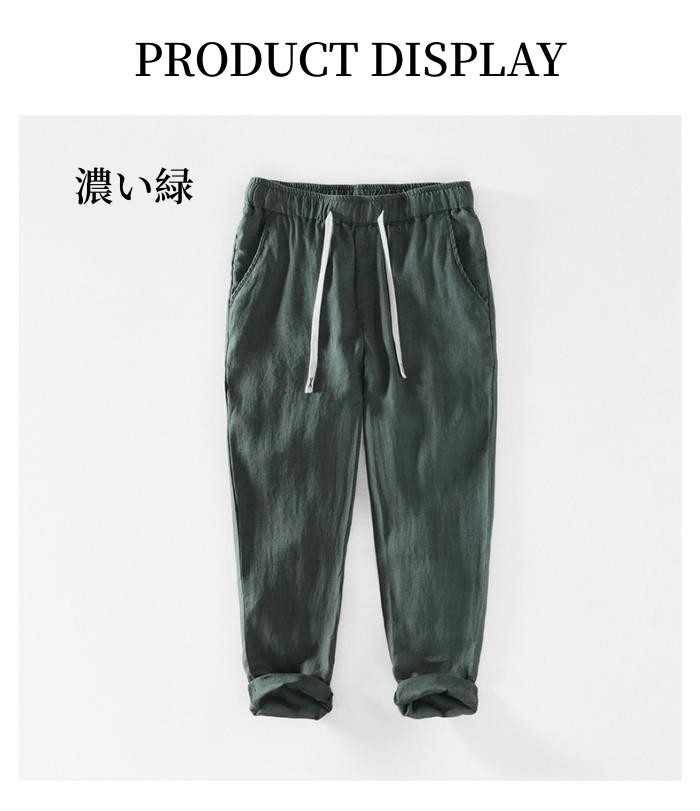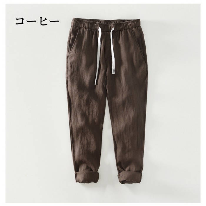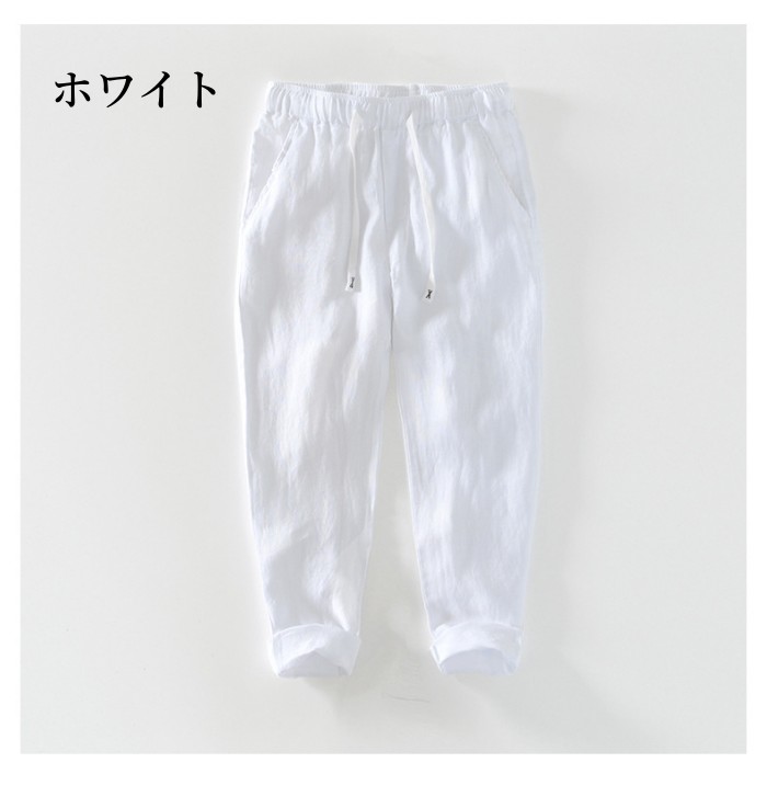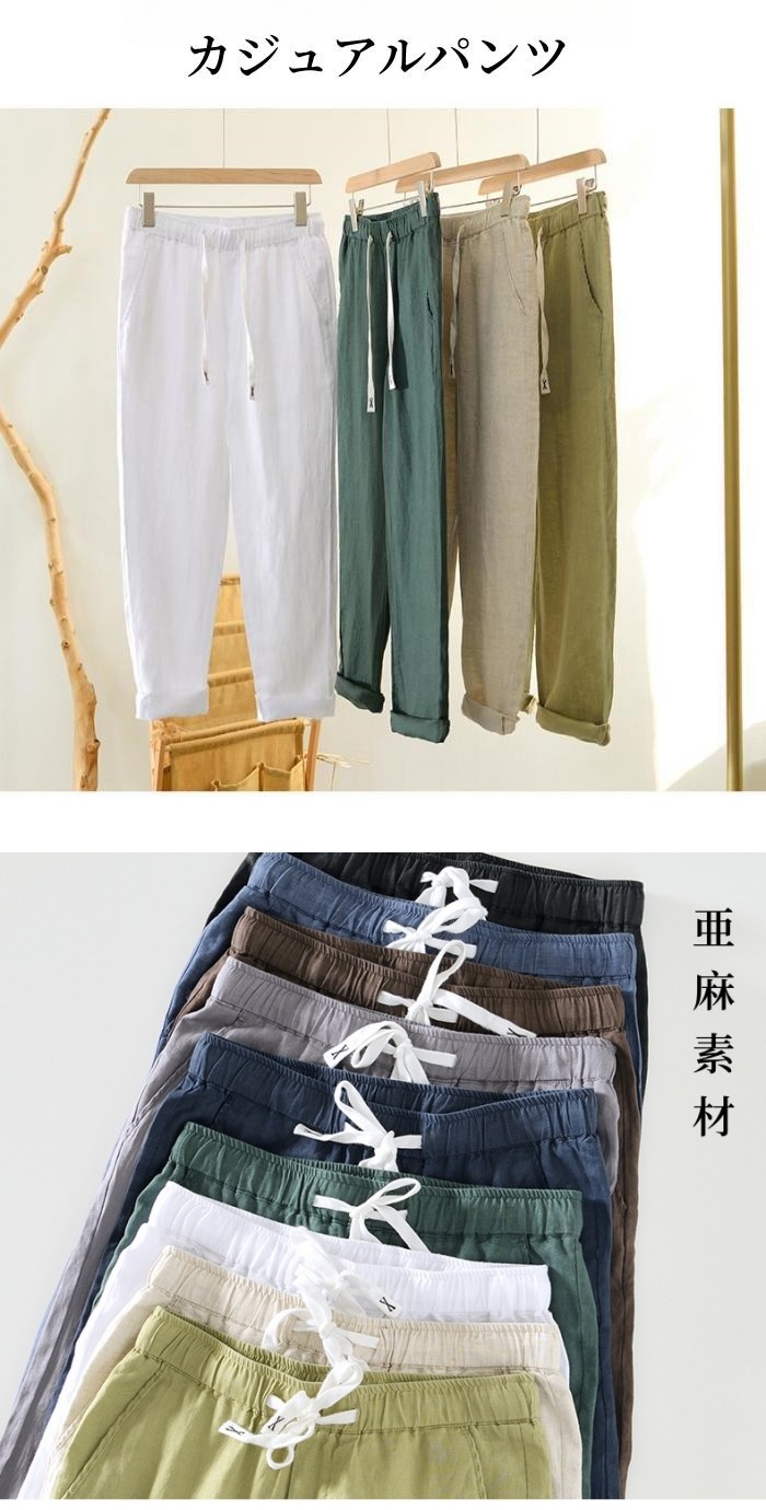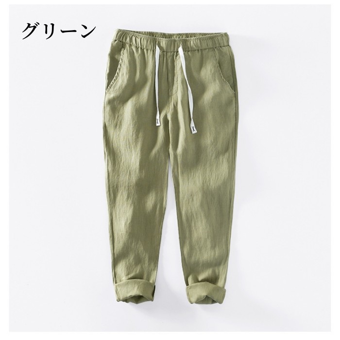 リネンパンツ ウエストゴム 通気性 快