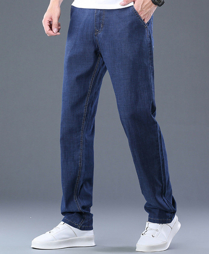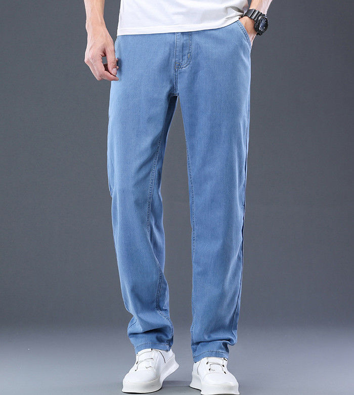 春 夏 秋 新作 薄手 ジーンズ ストレッチ デニムパンツ 男性用 ロングパンツ ジーパン ブルー 2colors