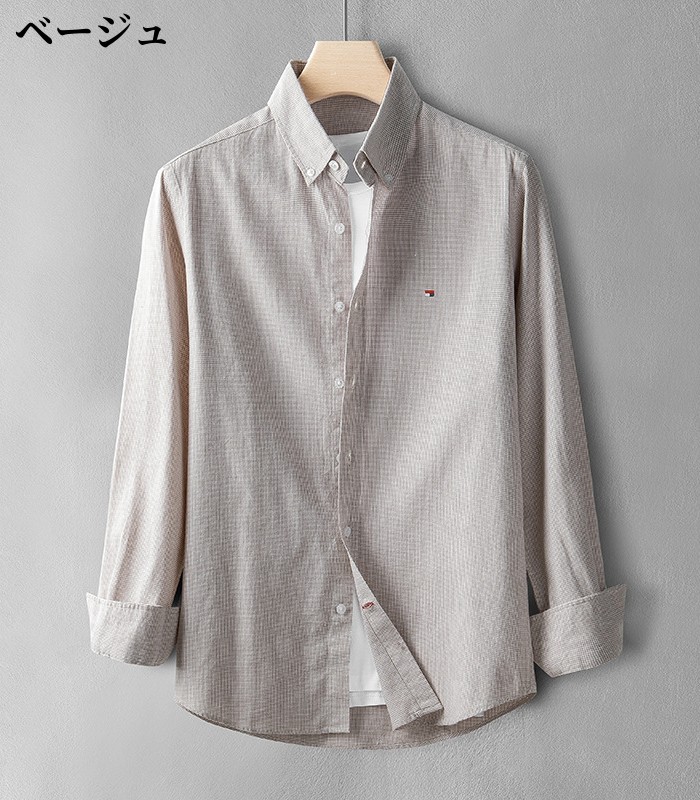 綿麻素材 ボタンダウン 長袖 リネンシ