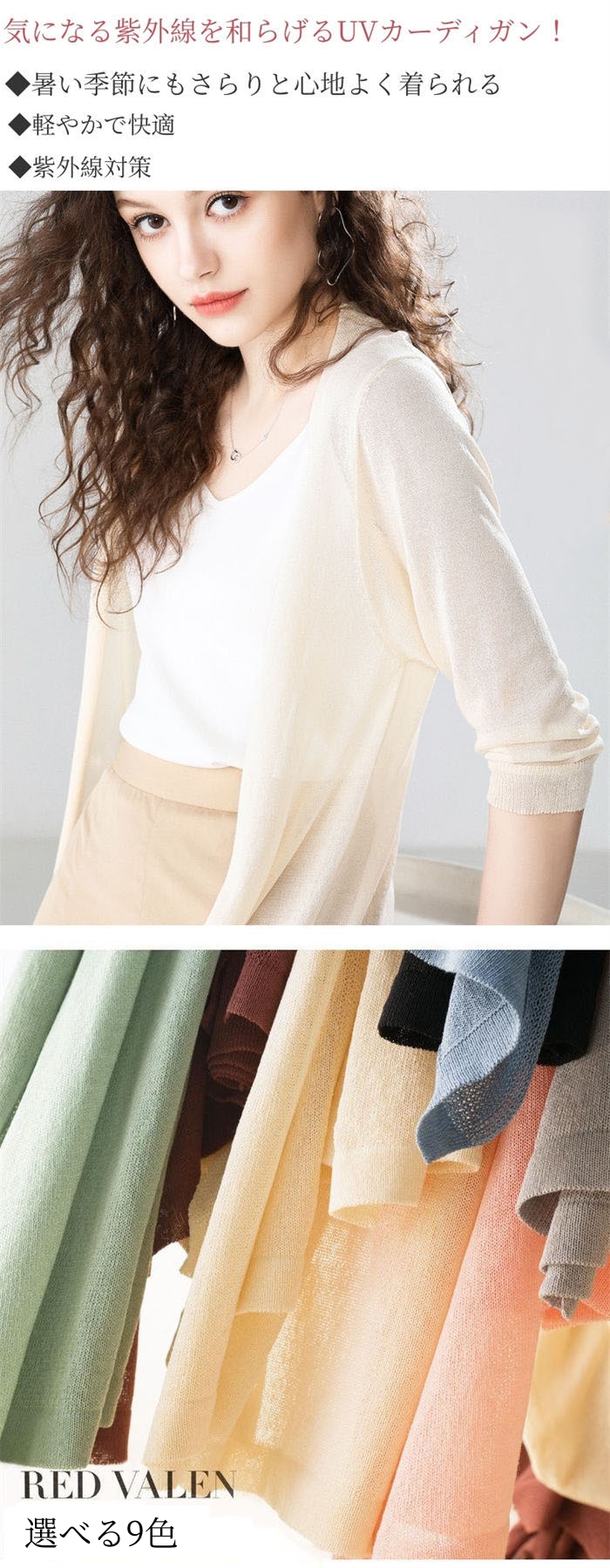 この薄手のカーディガンは、紫外線対策は