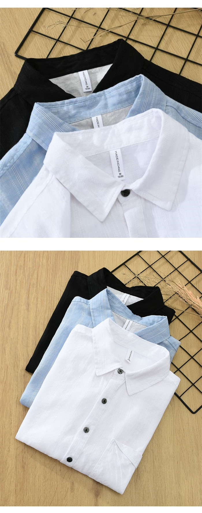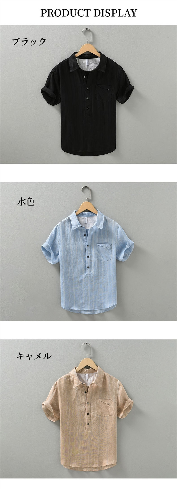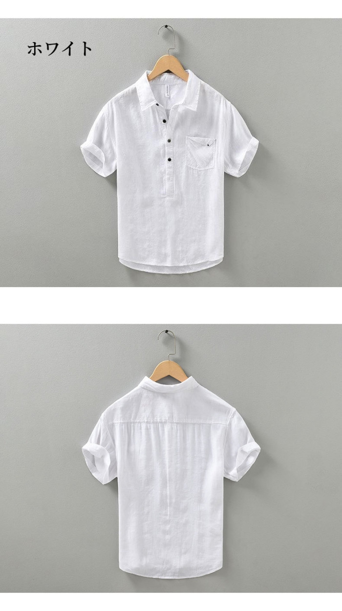 メンズ 綿麻半袖シャツ 快適 軽くて