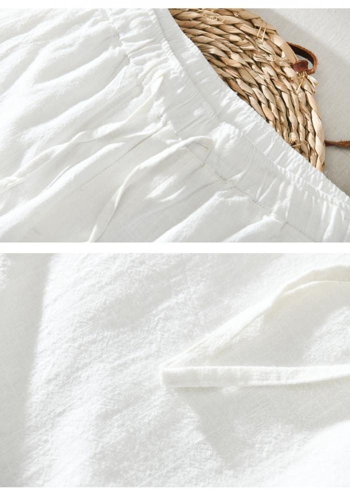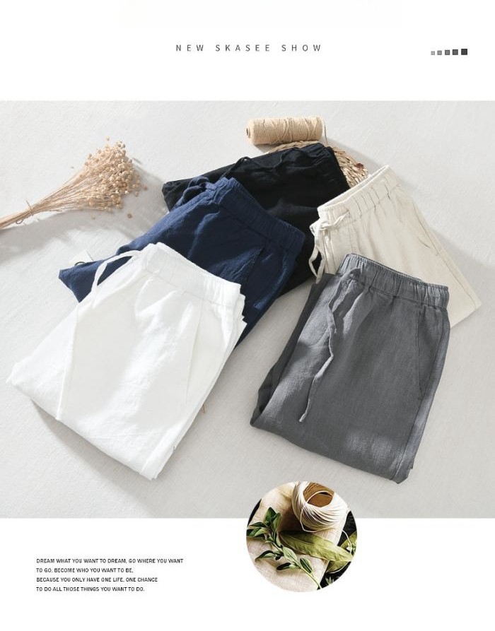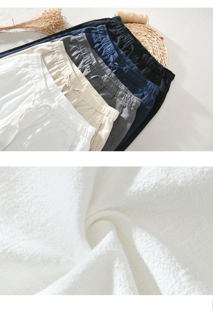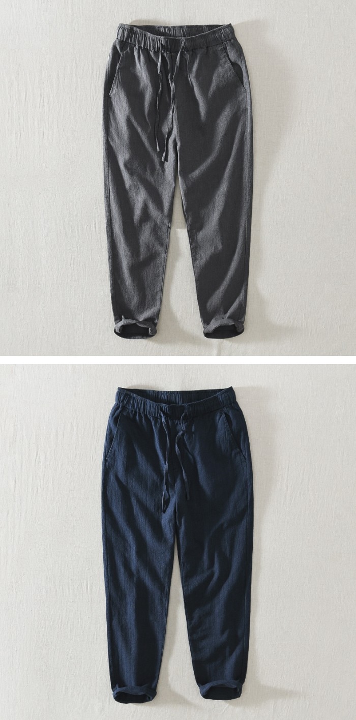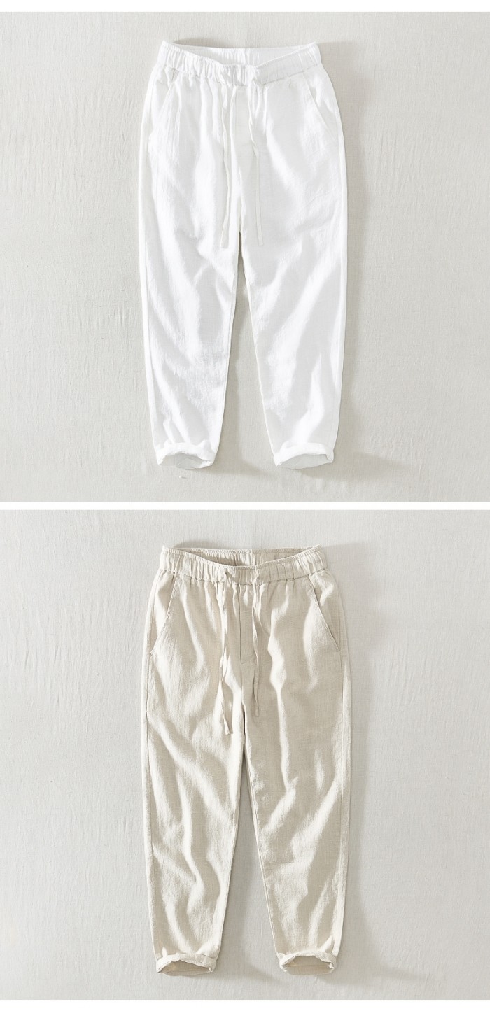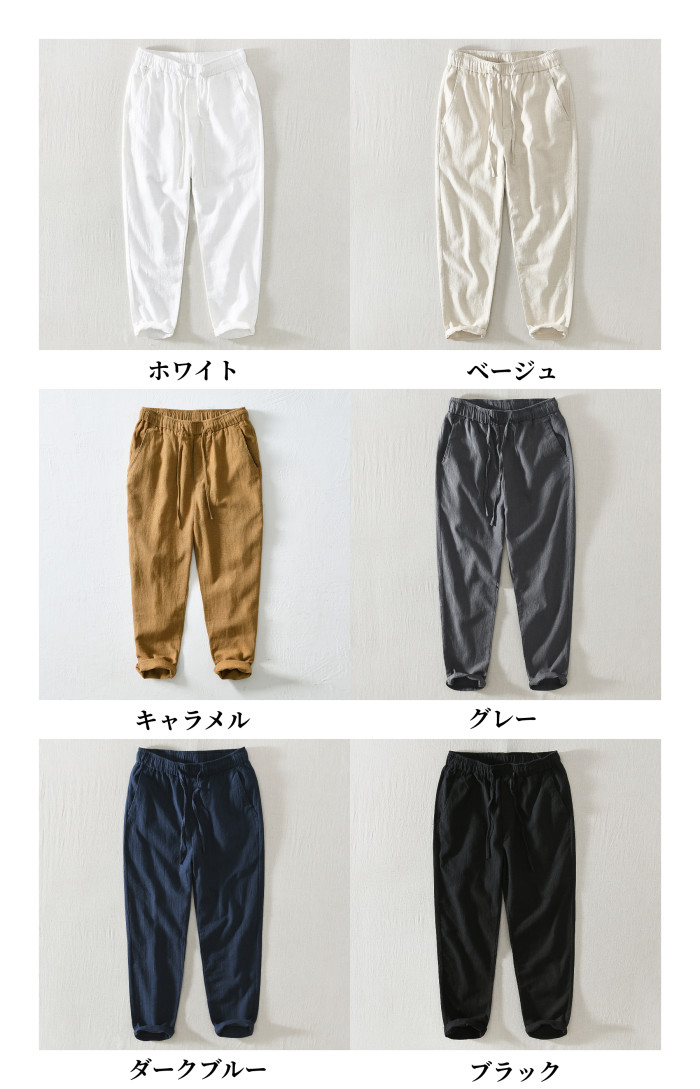 綿麻素材 九分丈 テーパード パンツ