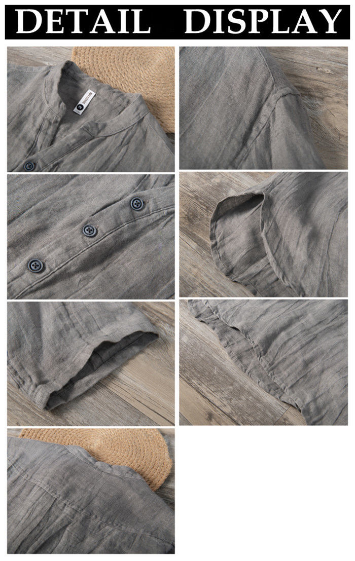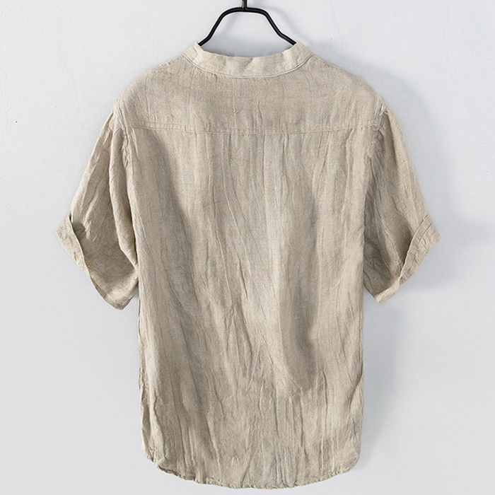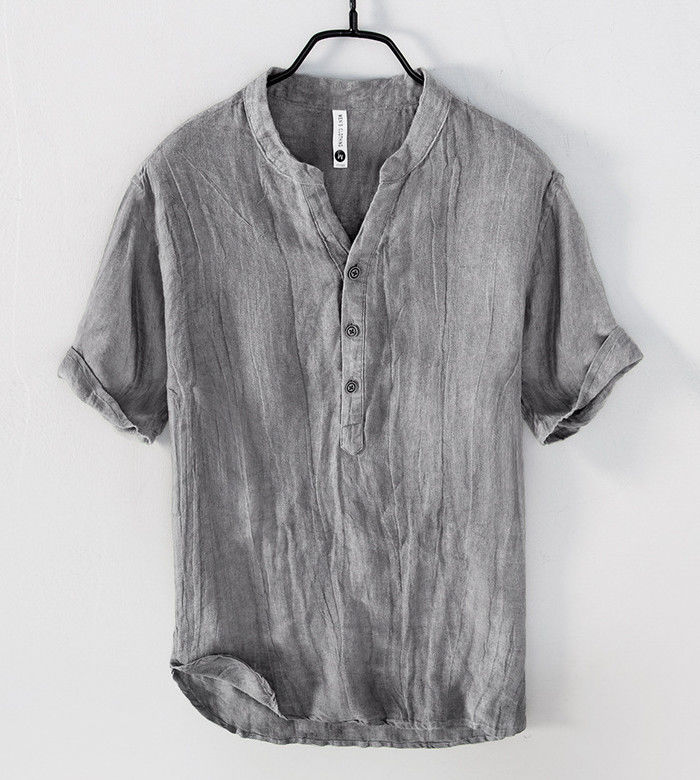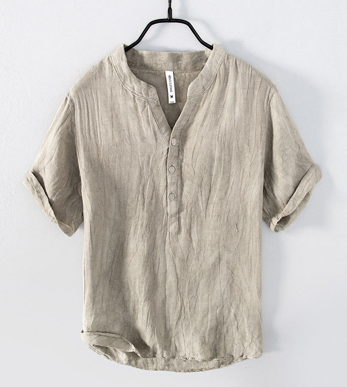 麻 ヘンリーネック 半袖Tシャツ カジ
