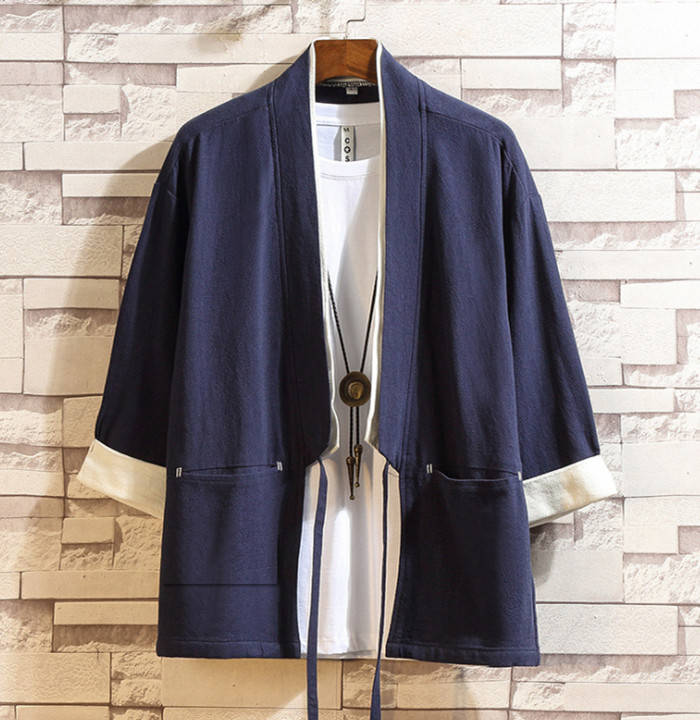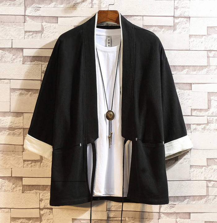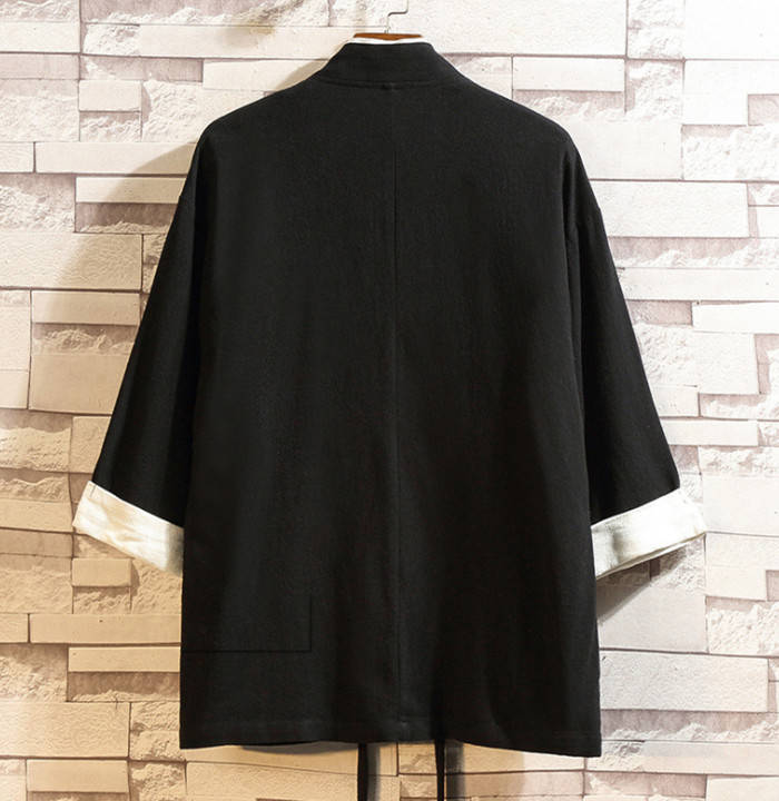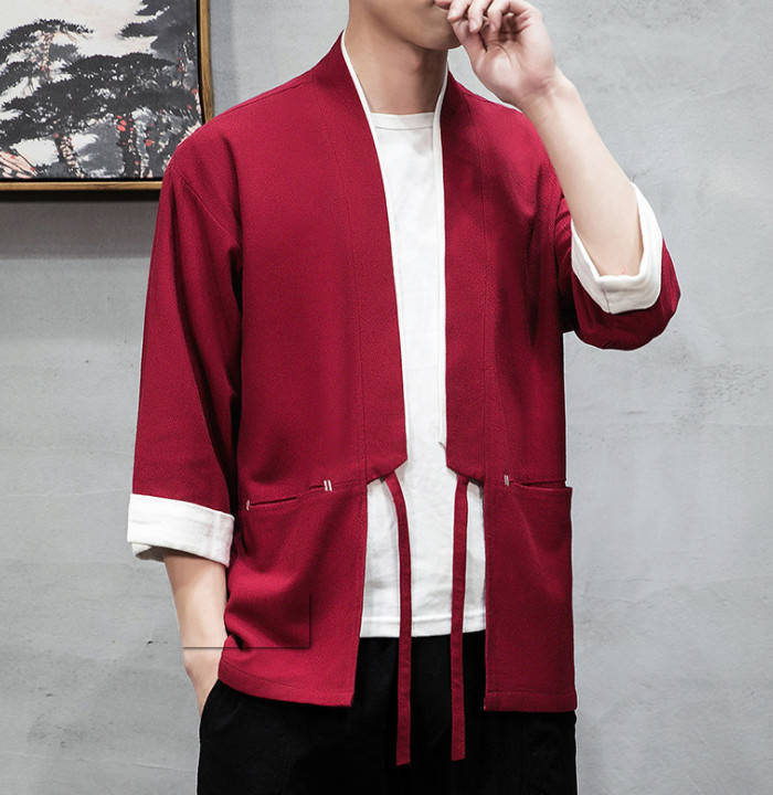 綿麻 七分袖 カーディガン 無地 和風 和服 ゆったり トップス アウター 春夏服 3colors 赤色 黒色