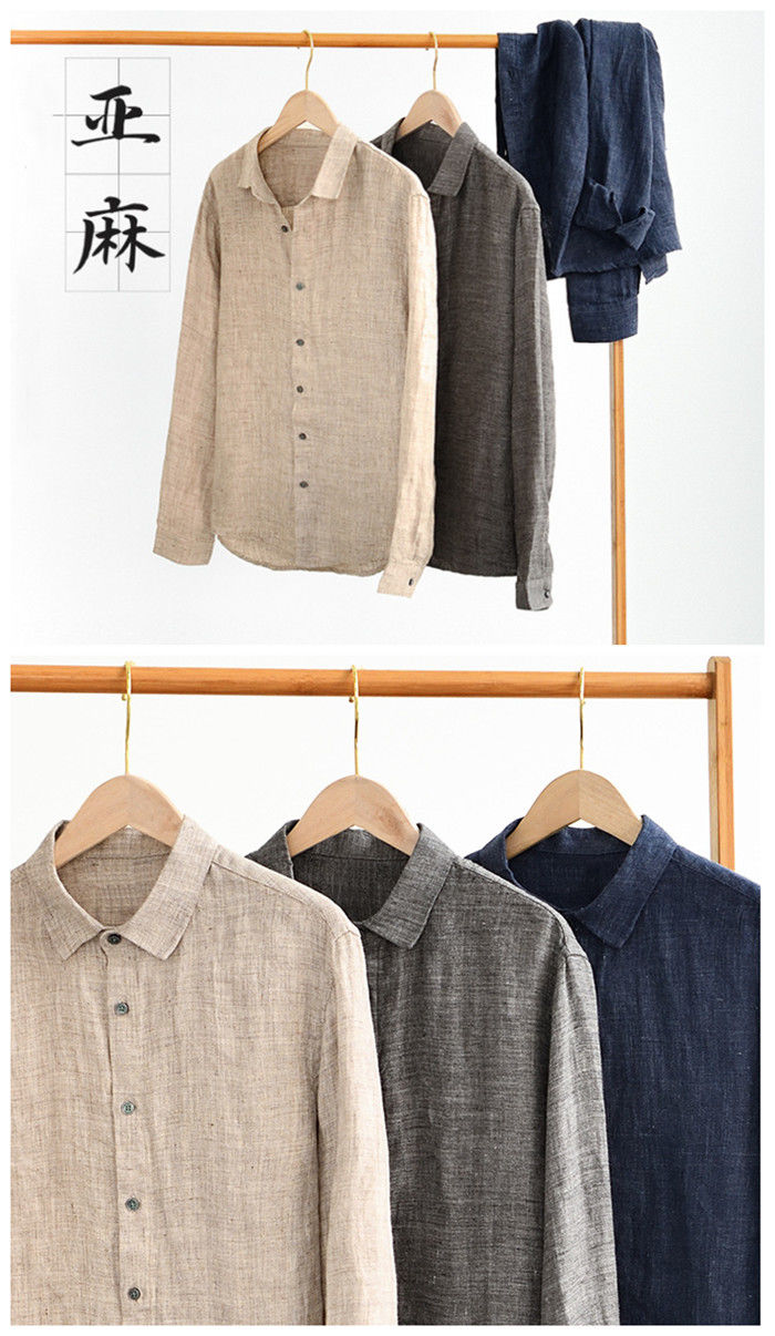 麻 長袖シャツ カジュアル シャツジャ