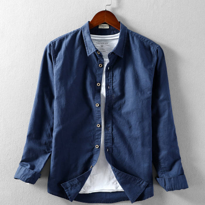 綿麻 ビジネス Yシャツ 長袖シャツ