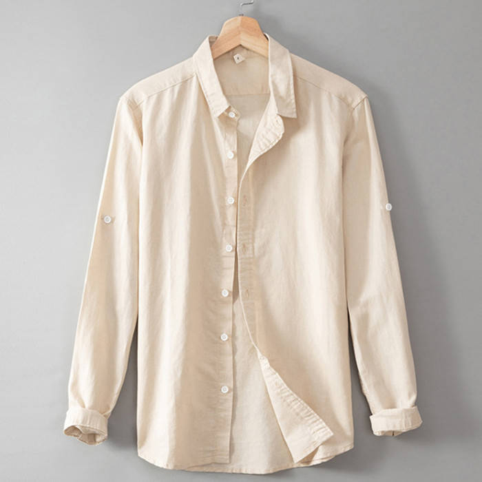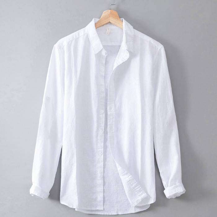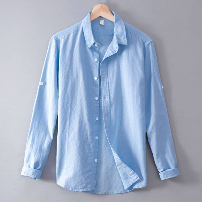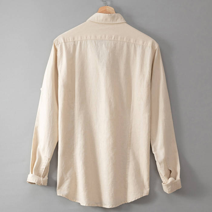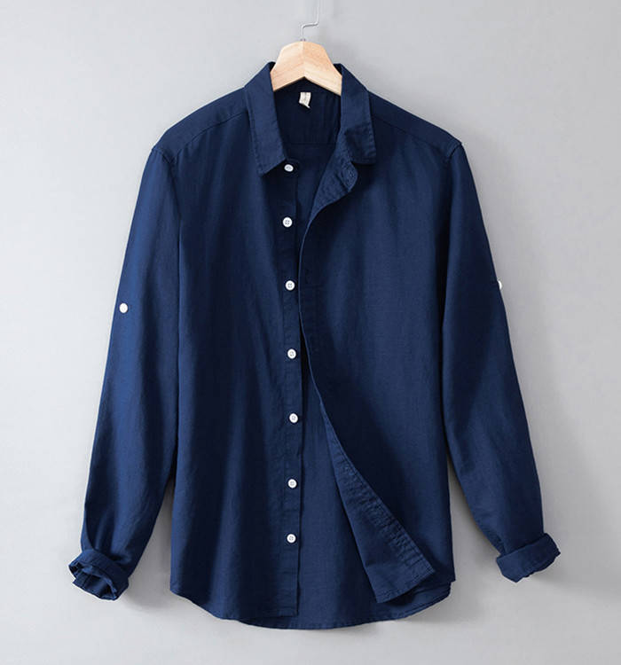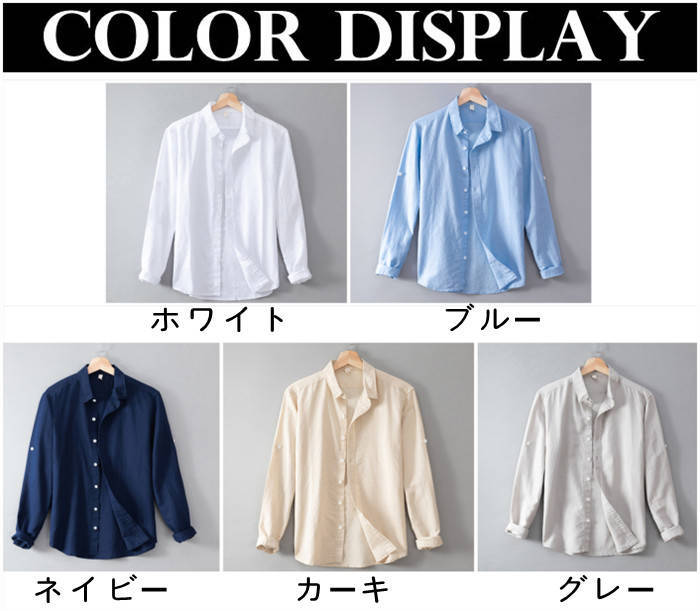 綿麻 ビジネス Yシャツ 長袖シャツ